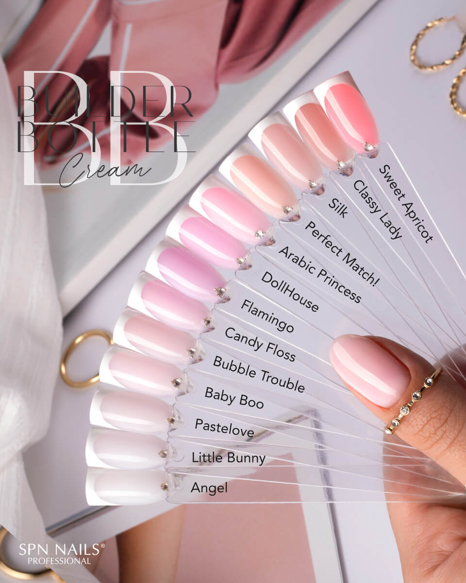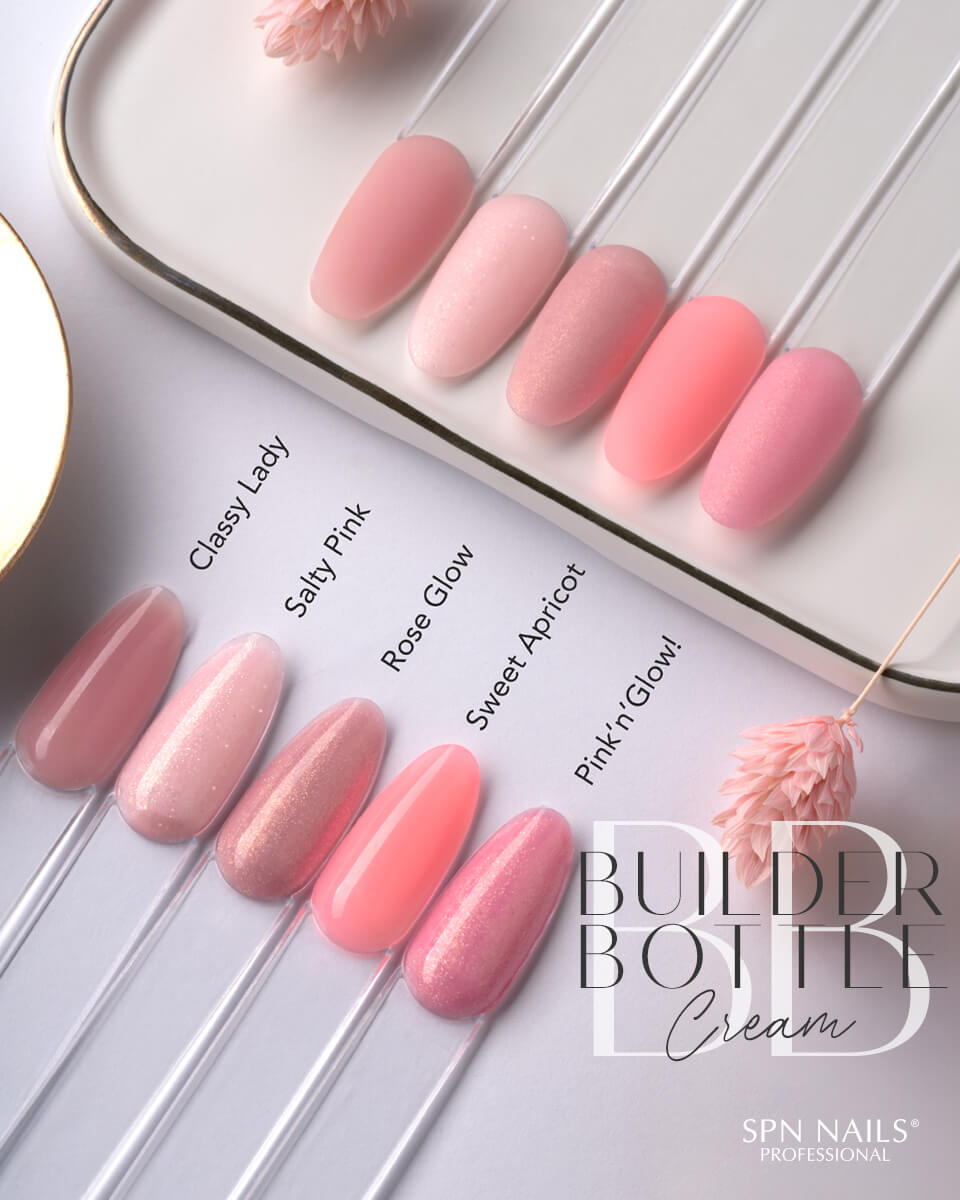 Dessuten er flaskegeler ofte tilgjengelige i en rekke nyanser – fra transparent og melkeaktig til delikate nude- og kamuflasjefarger. De er en flott base for fransk manikyr, babyboomere eller minimalistiske nude-utseende – uten behov for farget neglelakk.