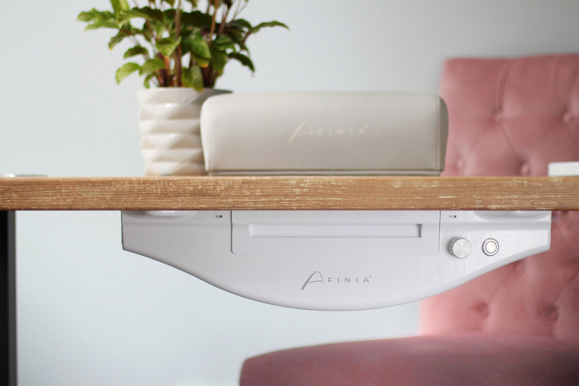 Afinia-enheten er utstyrt med pålitelige japanske motorer som gir kraftig støvsugekraft under behandling (270 m3 per driftstime). Det er kraften som kjennetegner absorberen på markedet og sikrer effektiviteten. Et polyester- eller karbonfilter sørger for at støv holdes på og ikke blåses rundt. Å puste inn neglestøv er skadelig for lungene og øyets bindehinne, det forårsaker ofte allergiske reaksjoner, og støvet legger seg skjemmende overalt under prosedyren. Denne enheten vil virkelig løse og eliminere støvproblemet ditt.