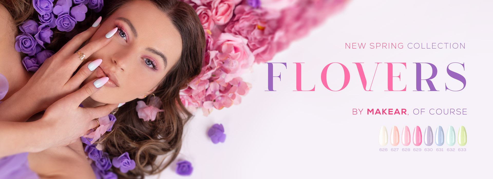 Skjønnheten til blomsterfarger fra MAKEAR. Den subtile fargepaletten fra "Flovers"-kolleksjonen kompletterer vårdagens stemning perfekt, og gjør manikyren din full av pastellfarger. Velg blandt åtte unike nyanser og kjenn vårens milde bris på din hender.