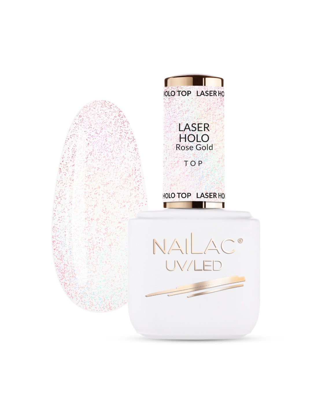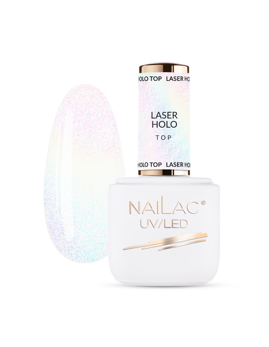 NaiLac Magic Top – partikler i forskjellige størrelser og nyanser, som skaper en konfetti-effekt. Denne topplakken ser ut som en nyttårsaften-dekorasjon i seg selv – ingen ekstra pynt nødvendig!