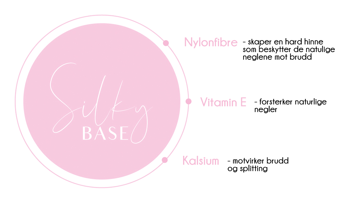 Silky Base kan brukes til å forlenge negler med opptil 8 mm. Kanskje 8 mm ikke høres så mye ut, men i negle-sammenheng er dette virkelig mye! For å oppnå tilsvarende resultat har man tidligere måttet ty til gel eller Acryl-O!-Gel, ettersom hybridbaser ikke har hatt egenskaper som gir slike muligheter. Ved forlengelse er det viktig å huske å bruke sjablong under Silky Base.