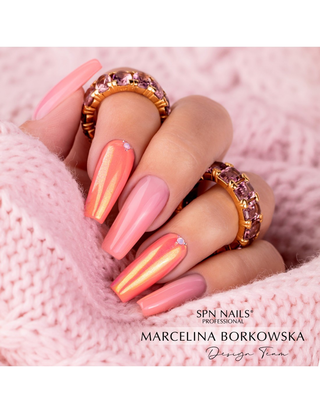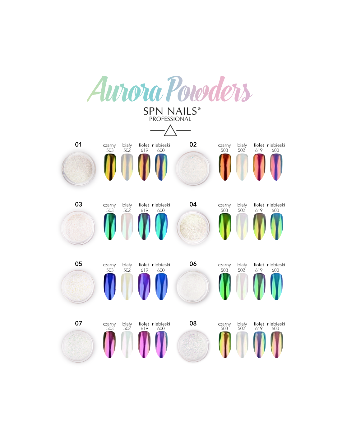 - Gni Aurora-støv på neglen med påføringspaden
