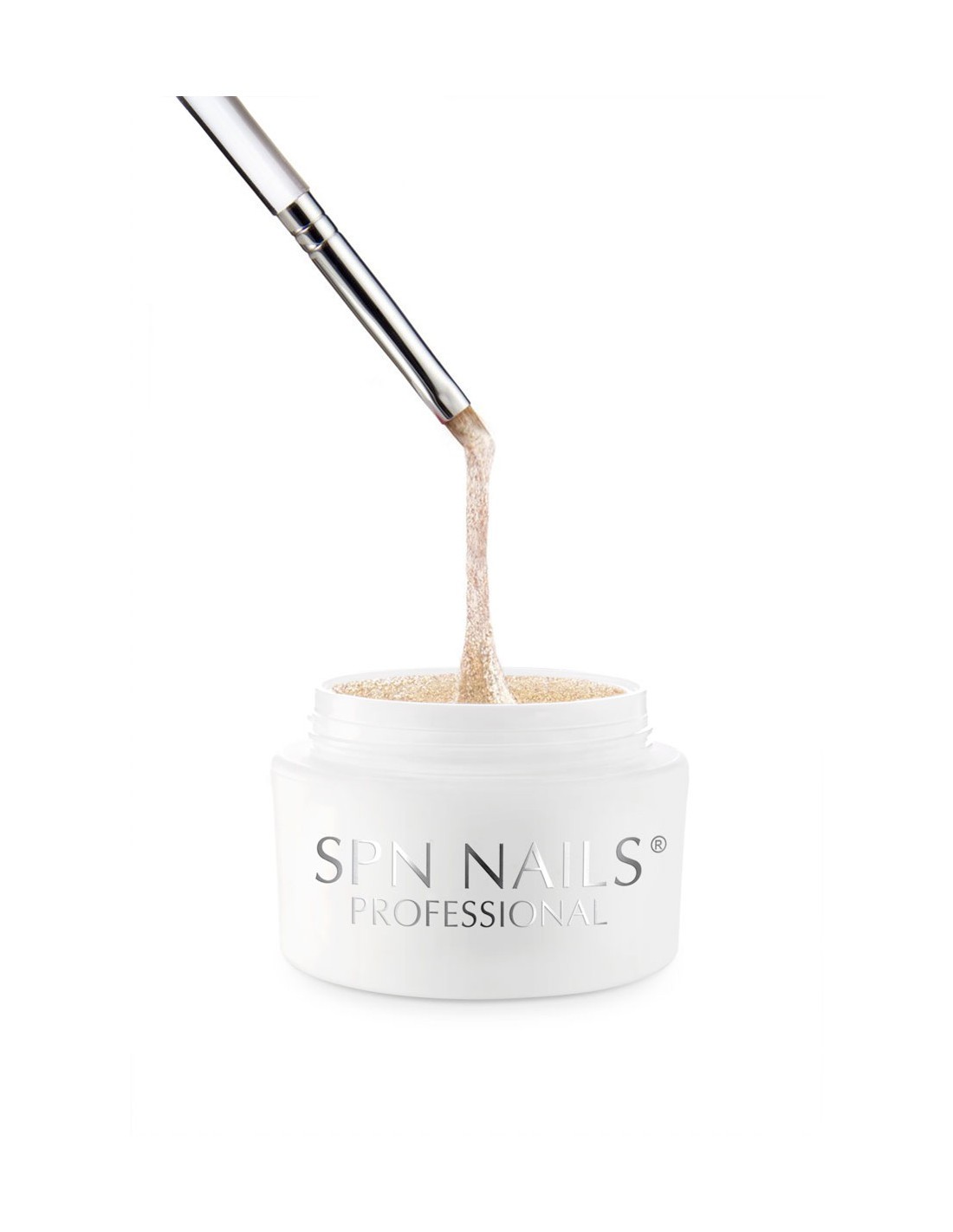 Metal Gel Gold er en nydelig, skimrende gele med gullglitter, hvis høykvalitetsprigmenter fordeles jevnt over negleplaten uten klatting eller streker.