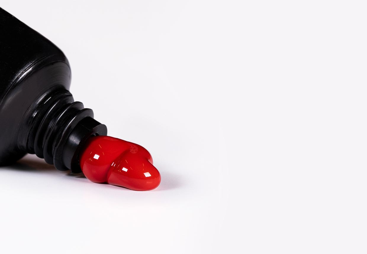 - Rød UV-gel, ideell for ornamenter, maling av mønstre eller skyggelegging. 100 % dekkende