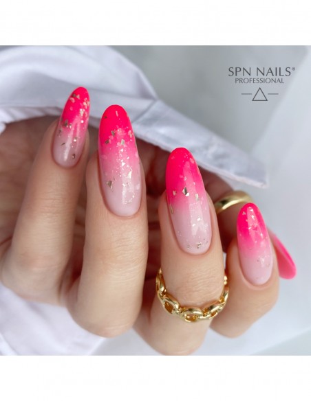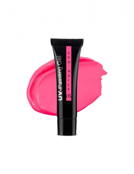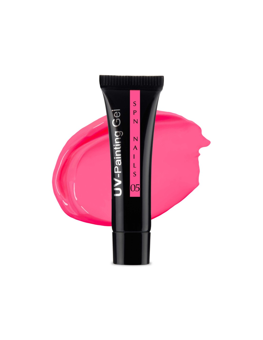 - Rosa neon UV-gel, ideell for ornamenter, maling av mønstre eller skyggelegging. 100 % dekkende
