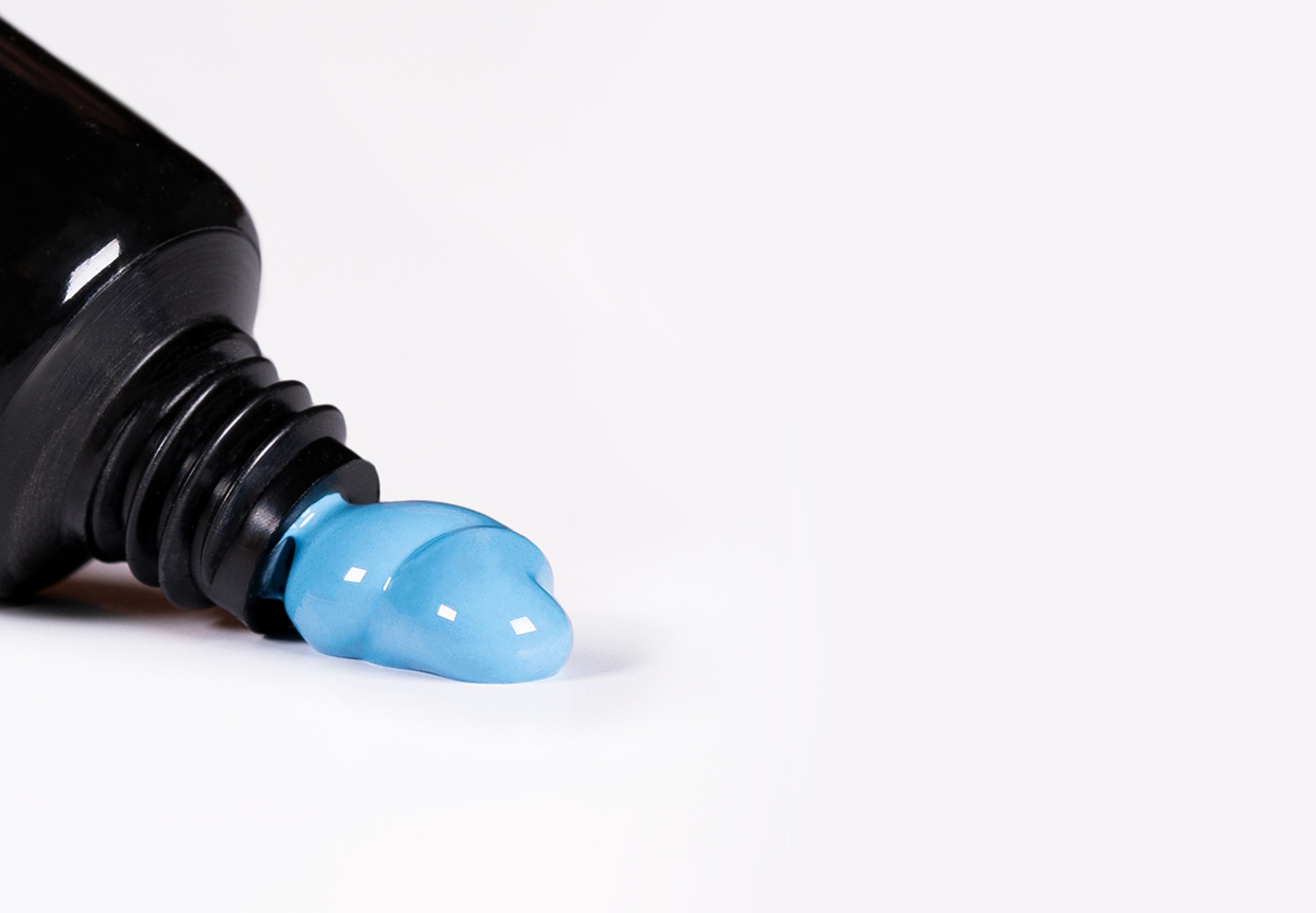 - Lyseblå UV-gel ideell for ornamenter, maling av mønstre eller skyggelegging. 100% dekkende