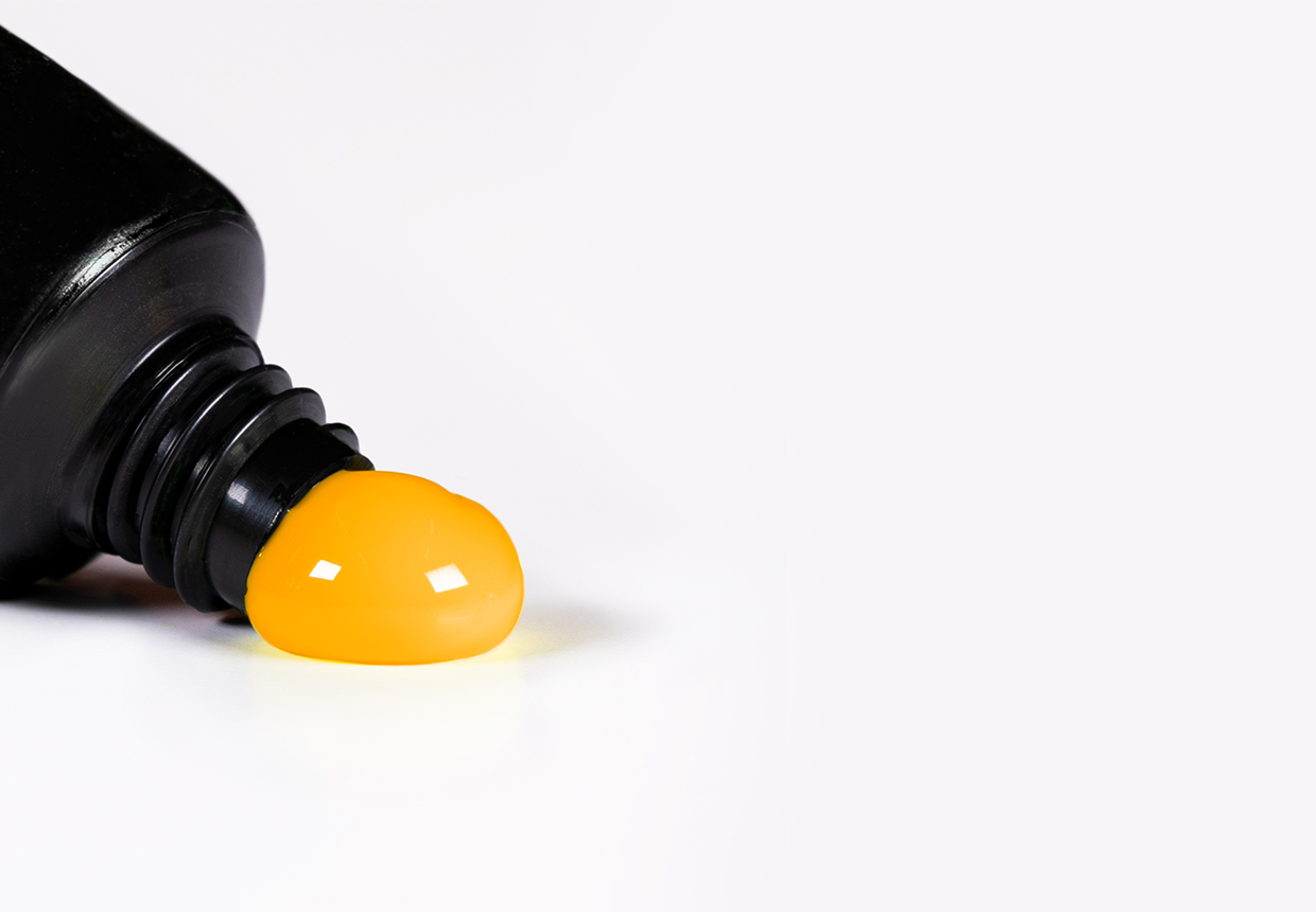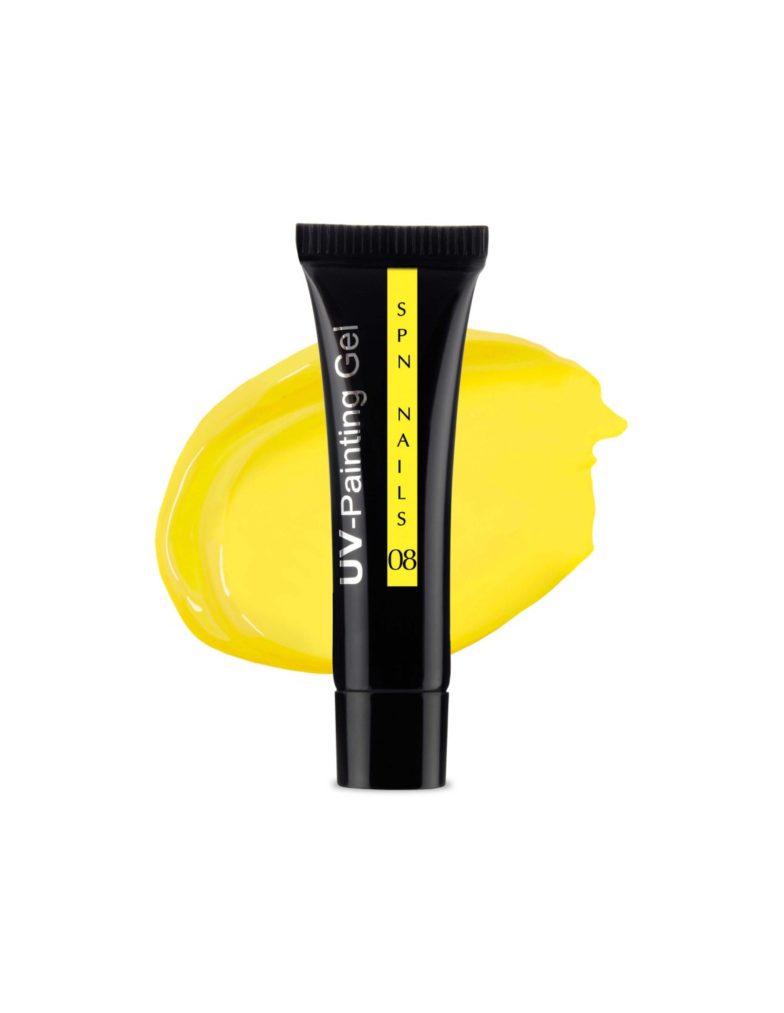 - Gul UV-gel ideell for ornamenter, maling av mønstre eller skyggelegging. 100% dekkende