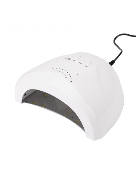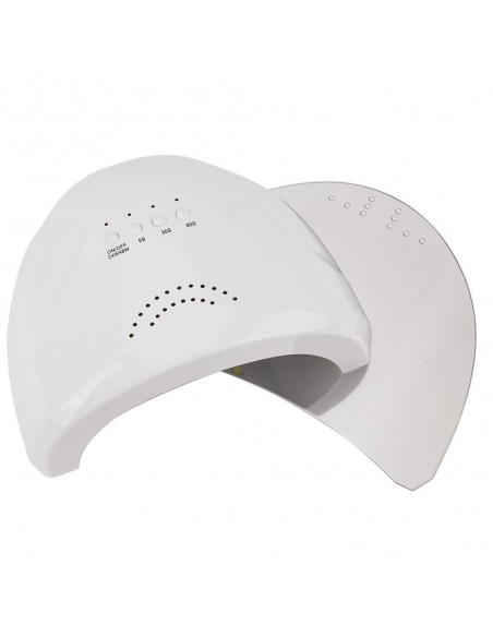 UV/LED-lampe for manikyr og pedikyr. Den har et speil, avtakbar bunn, så den vil være din følgesvenn under ekstreme forhold! Takket være en spesialtilpasset base som du fritt kan ta av, herder den kjapt hybridlakker, baser, topper og geler uten problemer! Selv høypigmenterte dekkgeler vil ikke lenger være et problem!