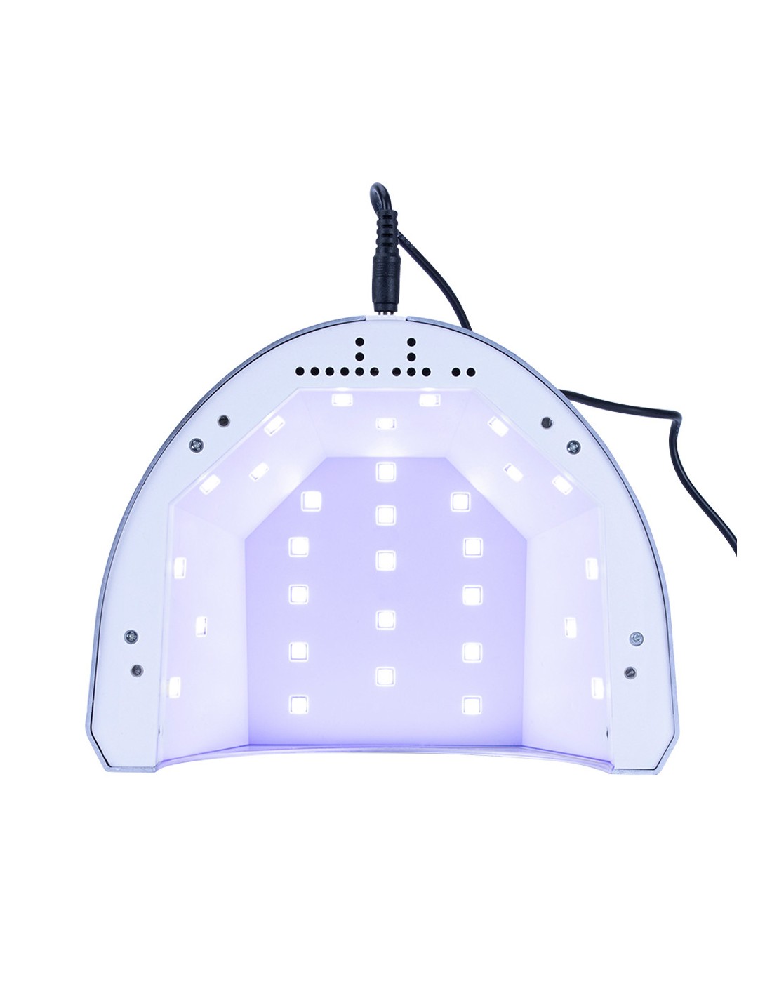 Lampen har en speilbunn, som i tillegg reflekterer og sprer lyset fra LED-diodene. Takket være dette når den til og med vanskelig tilgjengelige steder på sidene av negler og neglebånd. Vi kan da være sikre på at hybridlakken eller geleen vil stivne selv på de mest følsomme stedene.