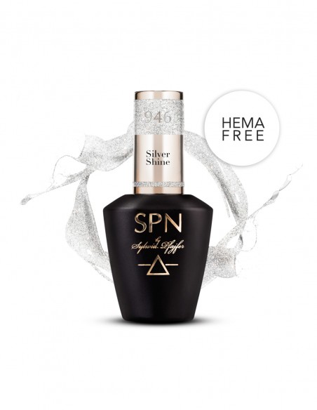Skinnende, sølv, holografisk hybridlakk 946 Silver Shine SPN Nails