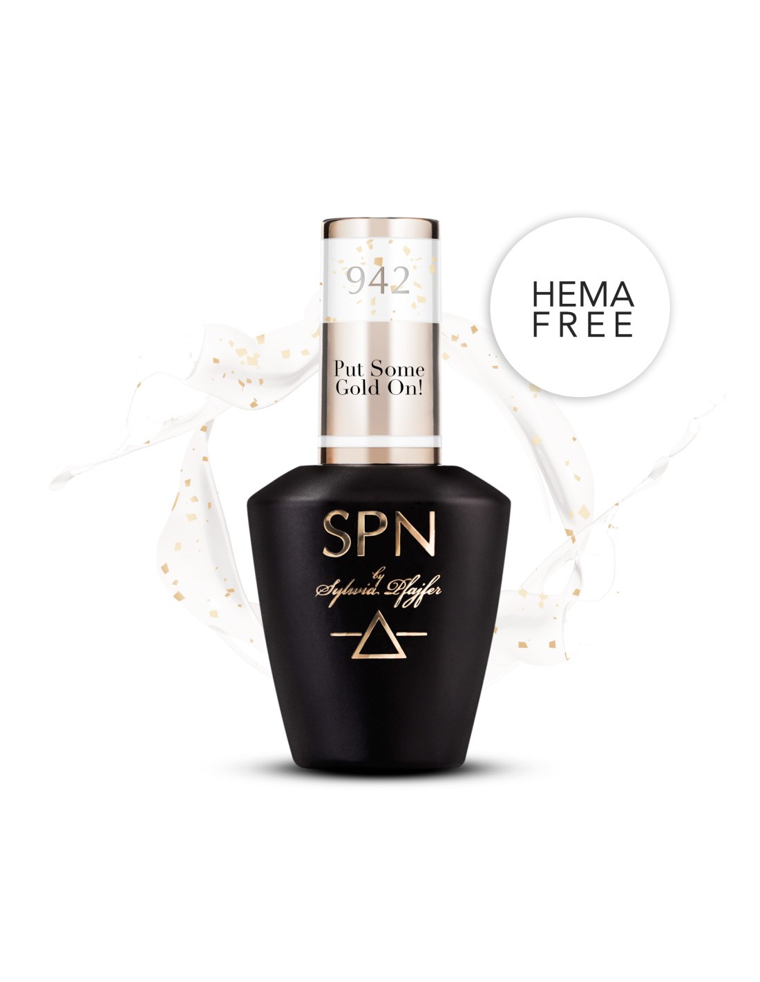 Matt, gjennomsiktig hybridlakk med gullpartikler 942 Put Some Gold On! SPN Nails