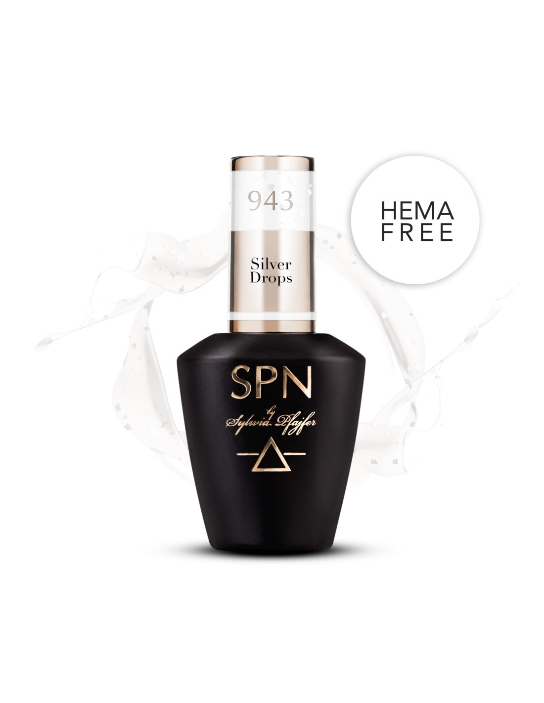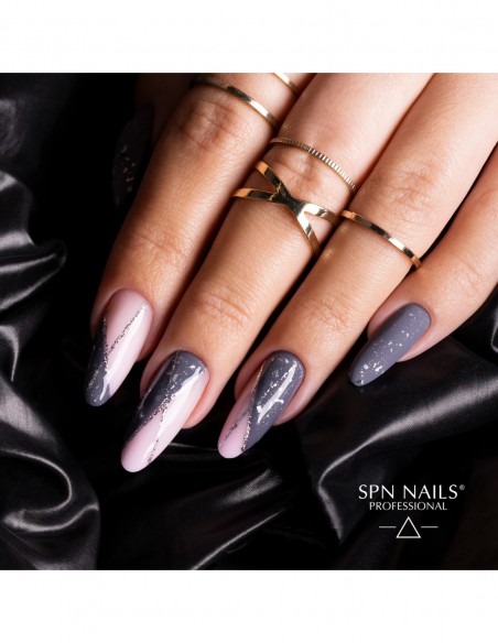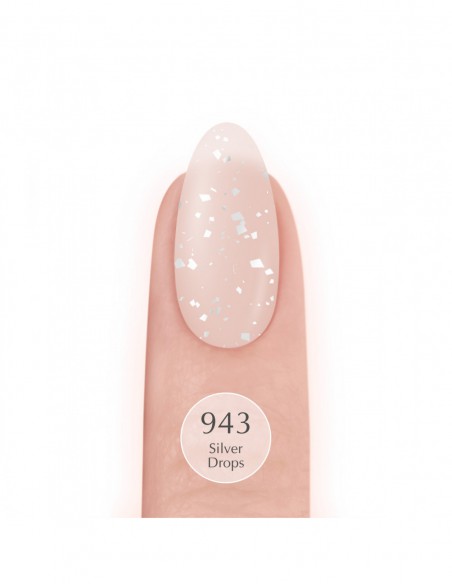 943 Silver Drops - en matt, gjennomsiktig lakk med sølvfargede partikler innebygd i den. Det vil gå perfekt med marineblått eller mørk lilla, samt ulike nyanser av grått.