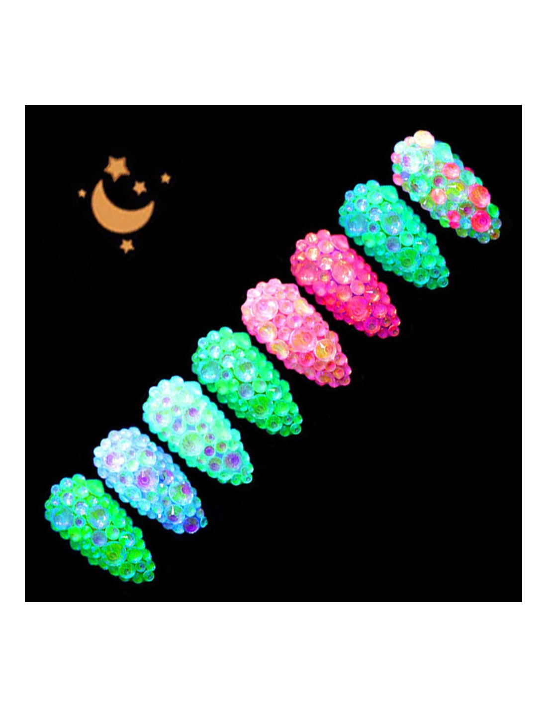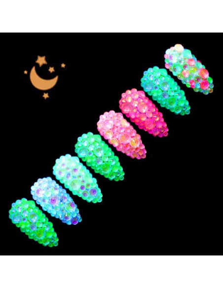krystaller Opal GLOW night - glød i mørket, blanding av størrelser - nr.2 - 250 stk.