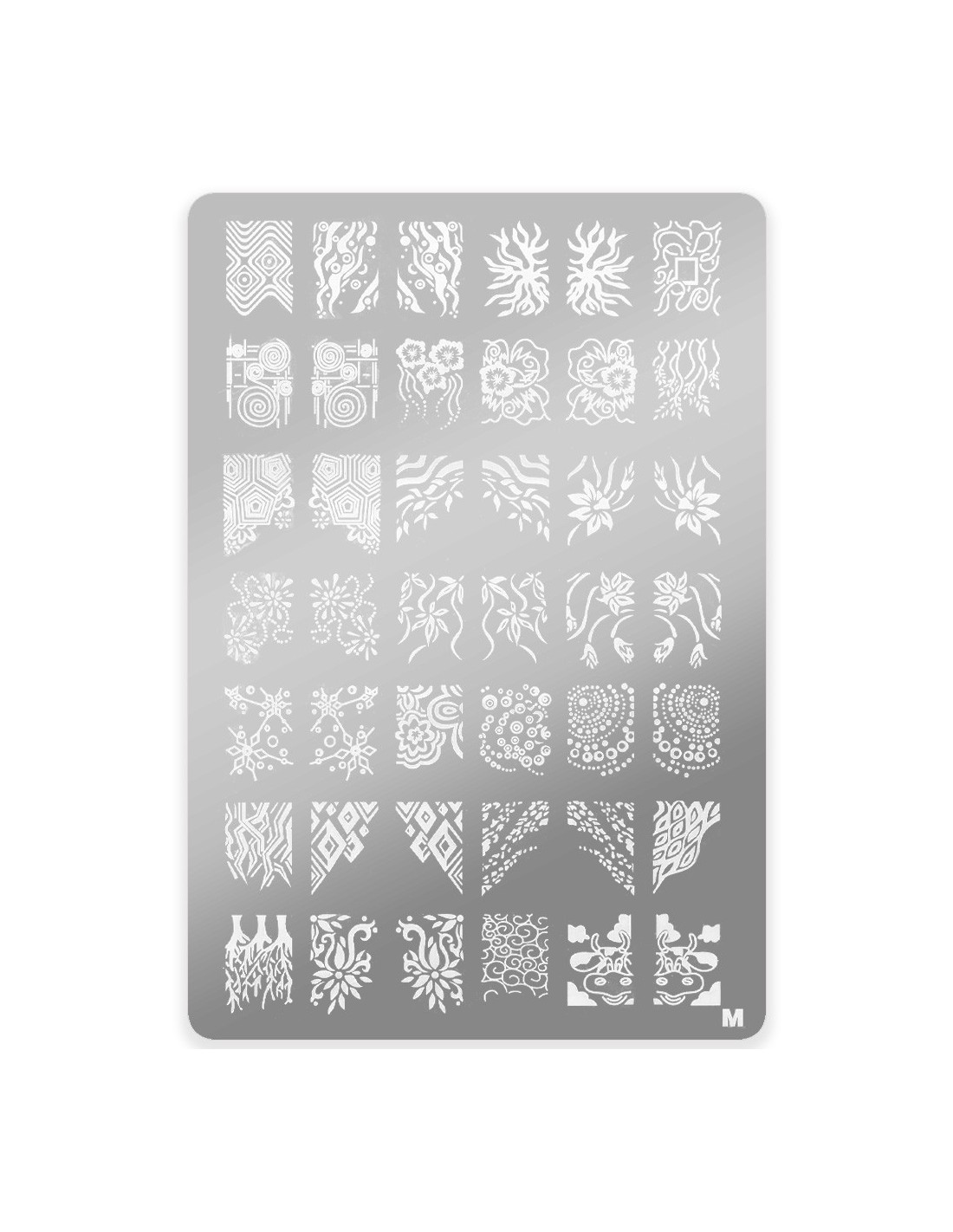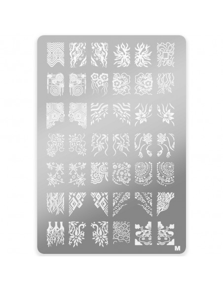 Platen er designet for stempling av mønstre på negler. En rask og veldig enkel form for presis neglekunst med både hybride og tradisjonelle neglelakker dedikert til denne metoden. Velg design fra et stort utvalg av fliser og overrask med en unik manikyr.