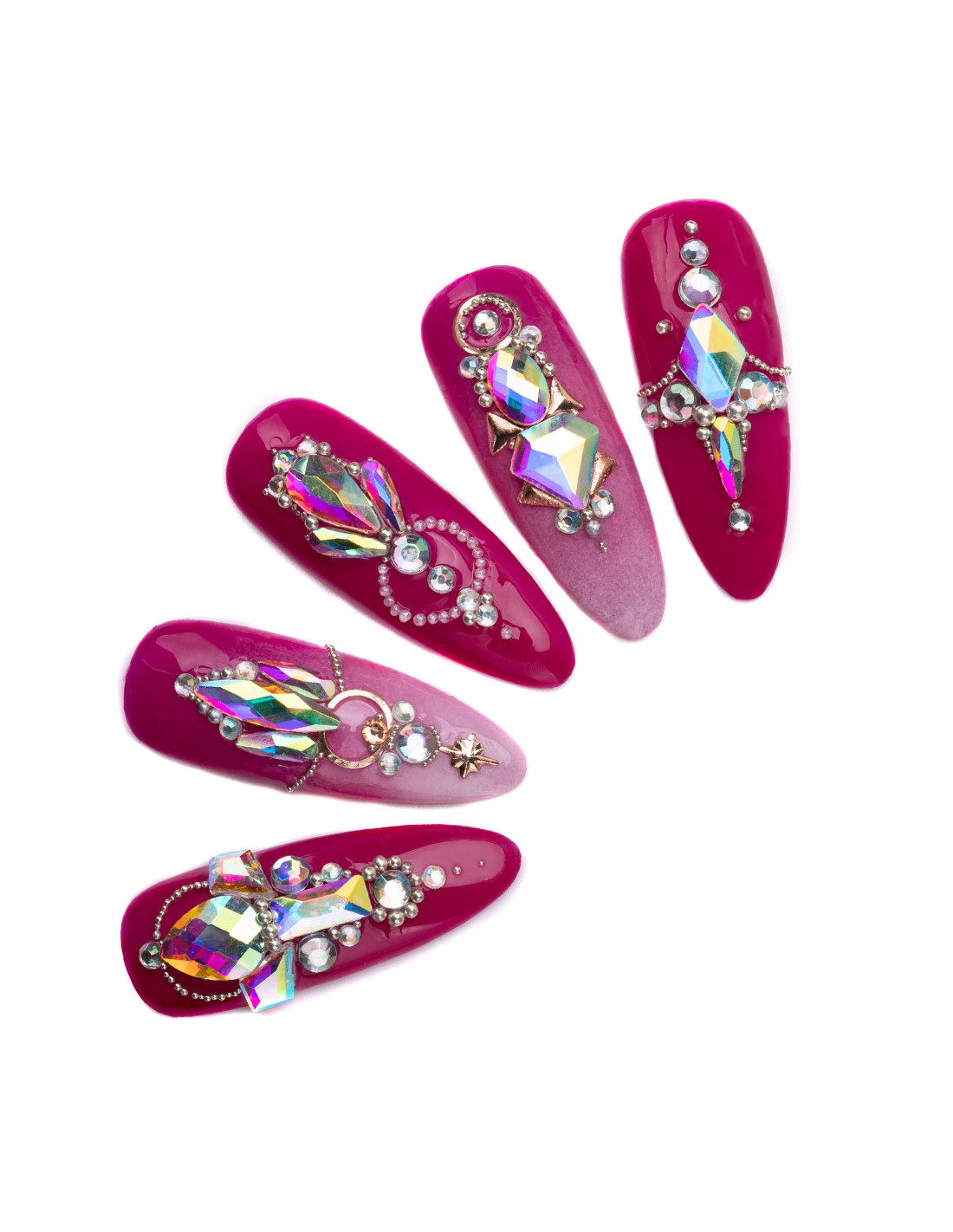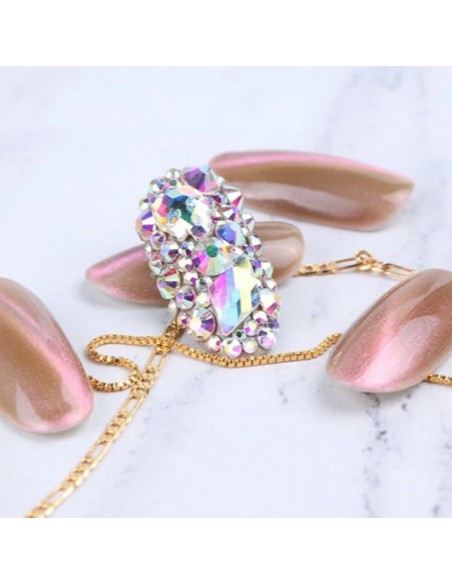 Krystaller som vil gi manikyren din en tredimensjonal effekt! Drømmer du om et unikt, blendende utseende? Du har kommet til rett sted! Iriserende, glitrende med en palett av farger, negle rhinestones er din må-ha i neglestyling! Du er bare begrenset av fantasien din!