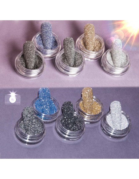 Oppdag den flerdimensjonale gløden av den unike reflekterende effekten – et pulver som skjuler den virkelige hemmeligheten bak glans! Den uberørte gløden som vises i lyset og glitrer med en million glitrende partikler, viser det "andre ansiktet" av denne forbløffende effekten. Hvis du er ute etter et originalt forslag for ditt unike utseende, la deg bli overrasket over effekten full av diamant, opplyste gnister!