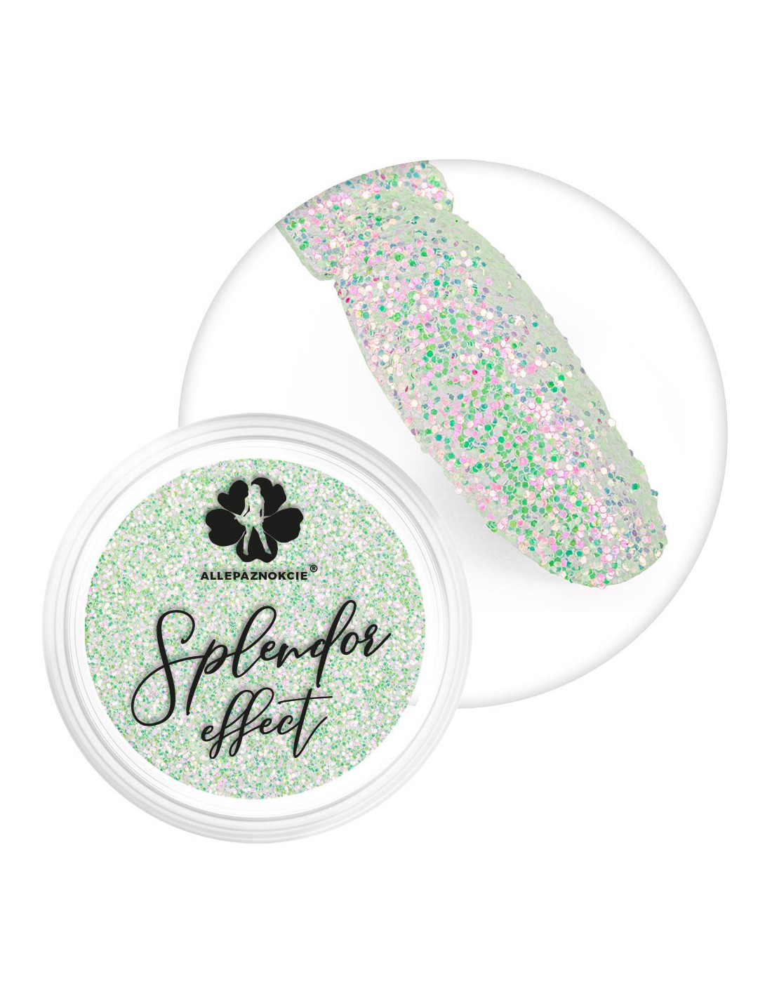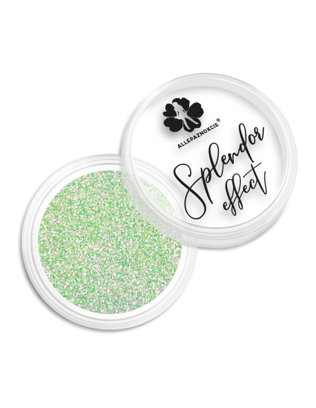 Splendor er et pastellstøv med en distinkt opaliserende partikkel. Dens krystallinske, rosa shimmer og reflekterende solstråle vil fengsle deg. Regnbuefargene i dette støvet vil piffe opp negledesignet ditt!