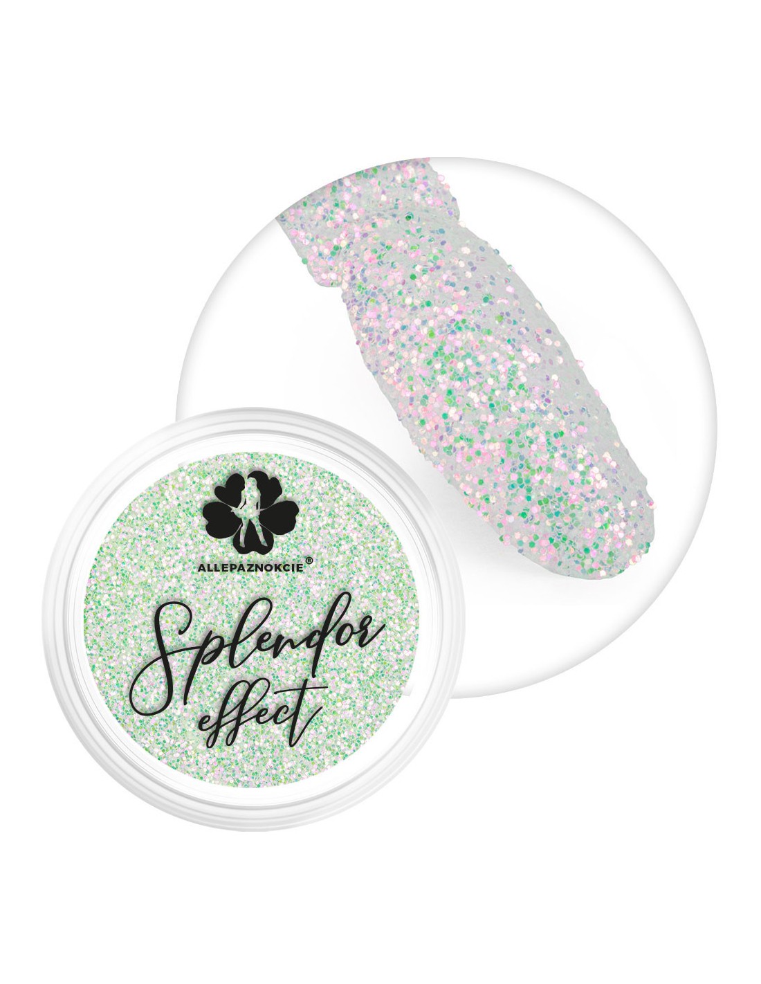 Splendor er et pastellstøv med en distinkt opaliserende partikkel. Dens krystallinske, rosa shimmer og reflekterende solstråle vil fengsle deg. Regnbuefargene i dette støvet vil piffe opp negledesignet ditt!