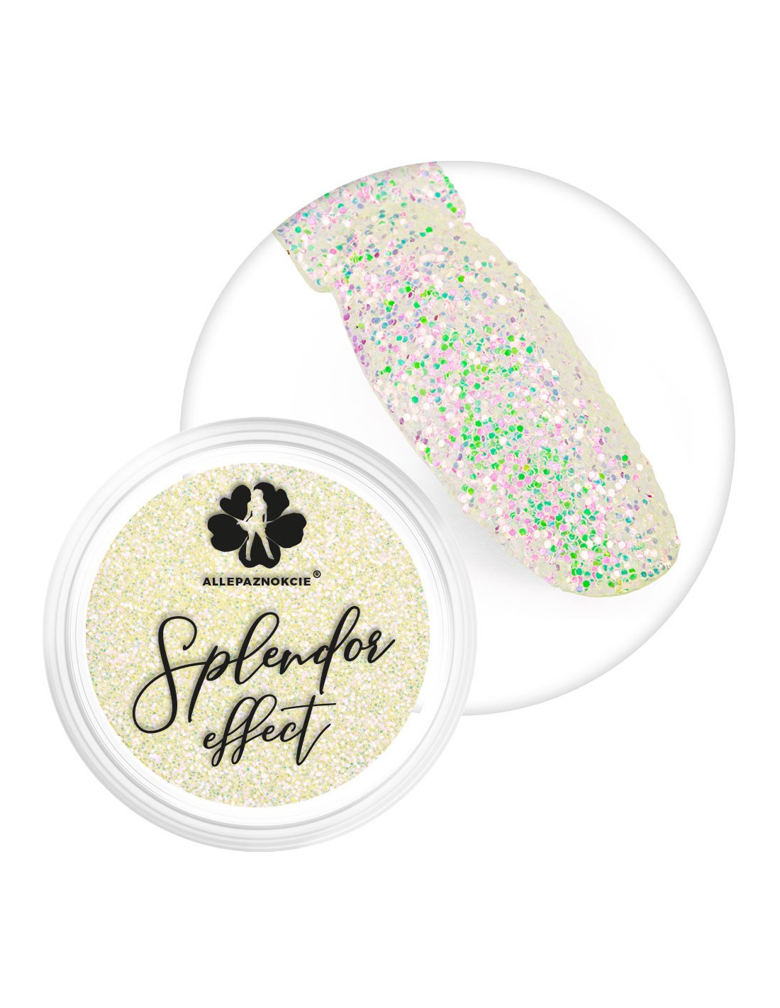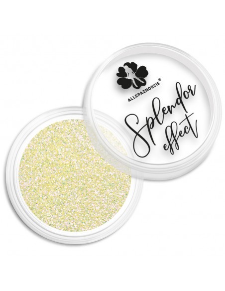 Splendor er et pastelldust med en distinkt opaliserende partikkel. Dens krystallinske, rosa shimmer og reflekterende solstråle vil fengsle deg. Regnbuefargene i dette dusten vil piffe opp negledesignet ditt!