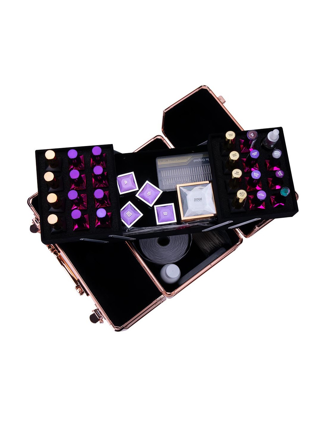 Kosmetisk boks til negleprodukter, str.M Diamond 3D rose golden