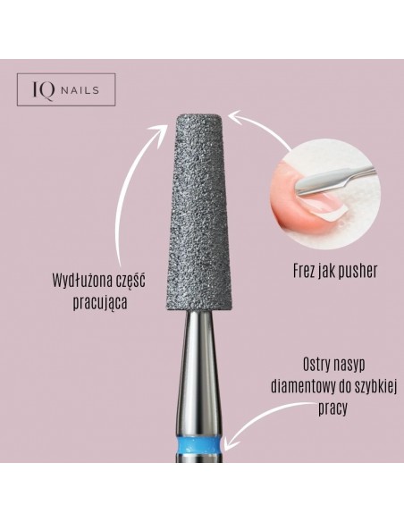 Lang avkortet kjeglefreser –173.524.025 Pusher. Størrelsen er økt i forhold til den tradisjonelle avkortede kjeglen for å fremskynde arbeidstiden til freseren. Perfekt for lange eller brede negler.