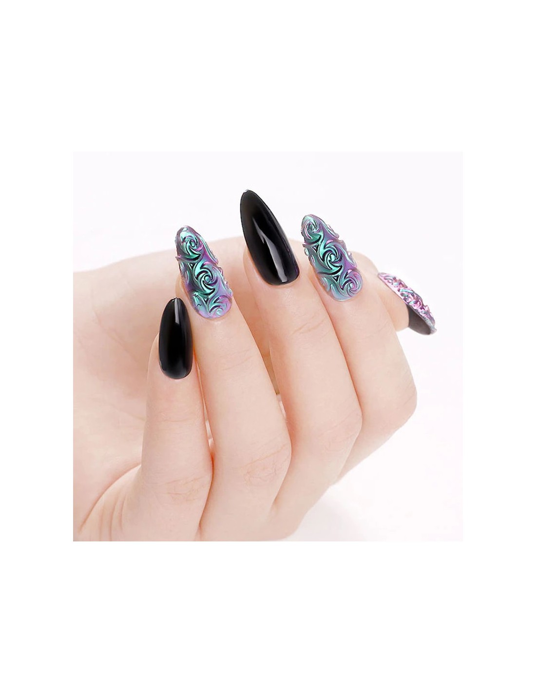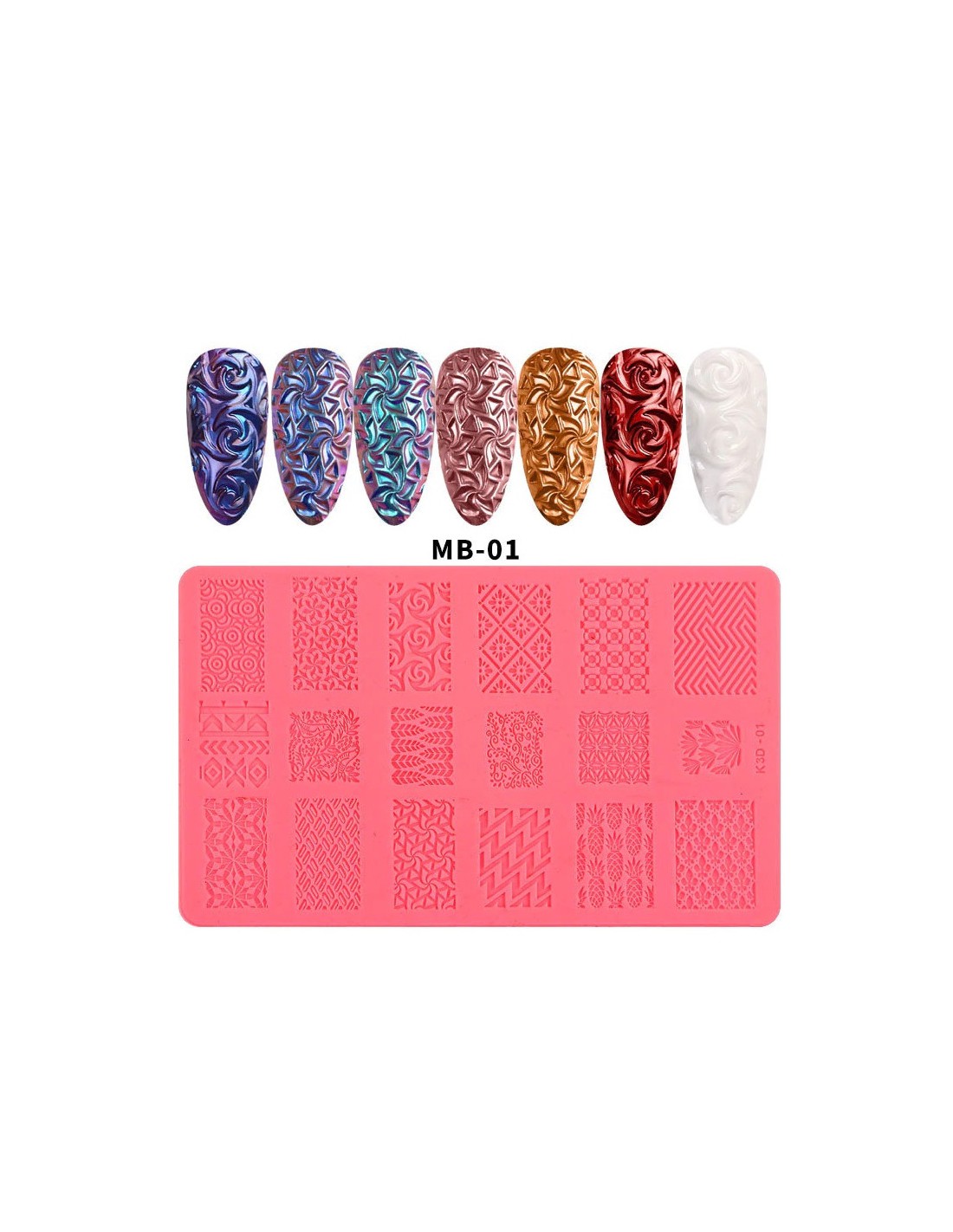 En silikonplate med vakre mønstre som lar deg enkelt og raskt lage fantastiske negldekorasjoner med kun akrylogel, pollen i favorittfargen din: krom, enhjørning, glass, kameleon. De mest moderne designene, oftest valgt av våre kunder i en moderne form av en silikonplate. Ekstremt slitesterk, lett, glir ikke under bruk og er ekstremt fleksibel. Enkel å rengjøre - bare tørk av med et rengjøringsmiddel etter endt arbeid!