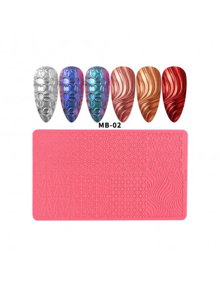 En silikonplate med vakre mønstre som lar deg enkelt og raskt lage fantastiske negldekorasjoner med kun akrylogel, pollen i favorittfargen din: krom, enhjørning, glass, kameleon. De mest moderne designene, oftest valgt av våre kunder i en moderne form av en silikonplate. Ekstremt slitesterk, lett, glir ikke under bruk og er ekstremt fleksibel. Enkel å rengjøre - bare tørk av med et rengjøringsmiddel etter endt arbeid!