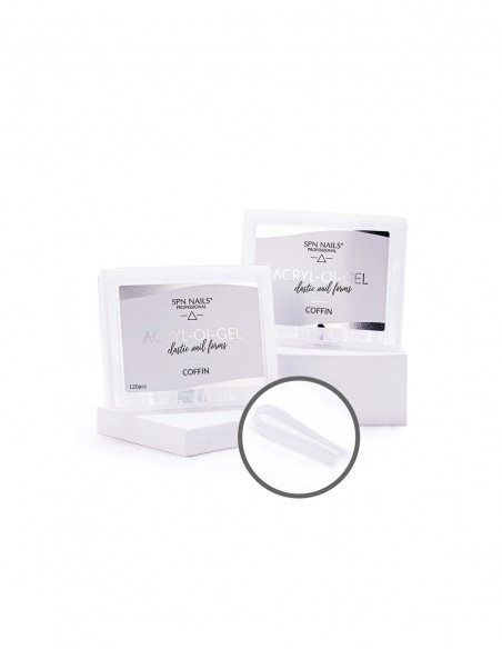 Transparente former Acryl-O!-Gel Elastic Nail Forms er et enkelt og behagelig arbeid med SPN Nails akrylgel. Takket være dem kan du raskt forlenge neglen uten å bruke klassiske negleformer. Den gjennomsiktige formen lar lyset fra lampen passere fritt gjennom den, slik at du kan være sikker på at stylingen er jevnt herdet. SPN Nails former vil også være en flott løsning for nybegynnere stylister.