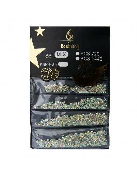 Fantastiske rhinestones i ulike størrelser. Hver størrelse er innelukket i et separat plastrom.