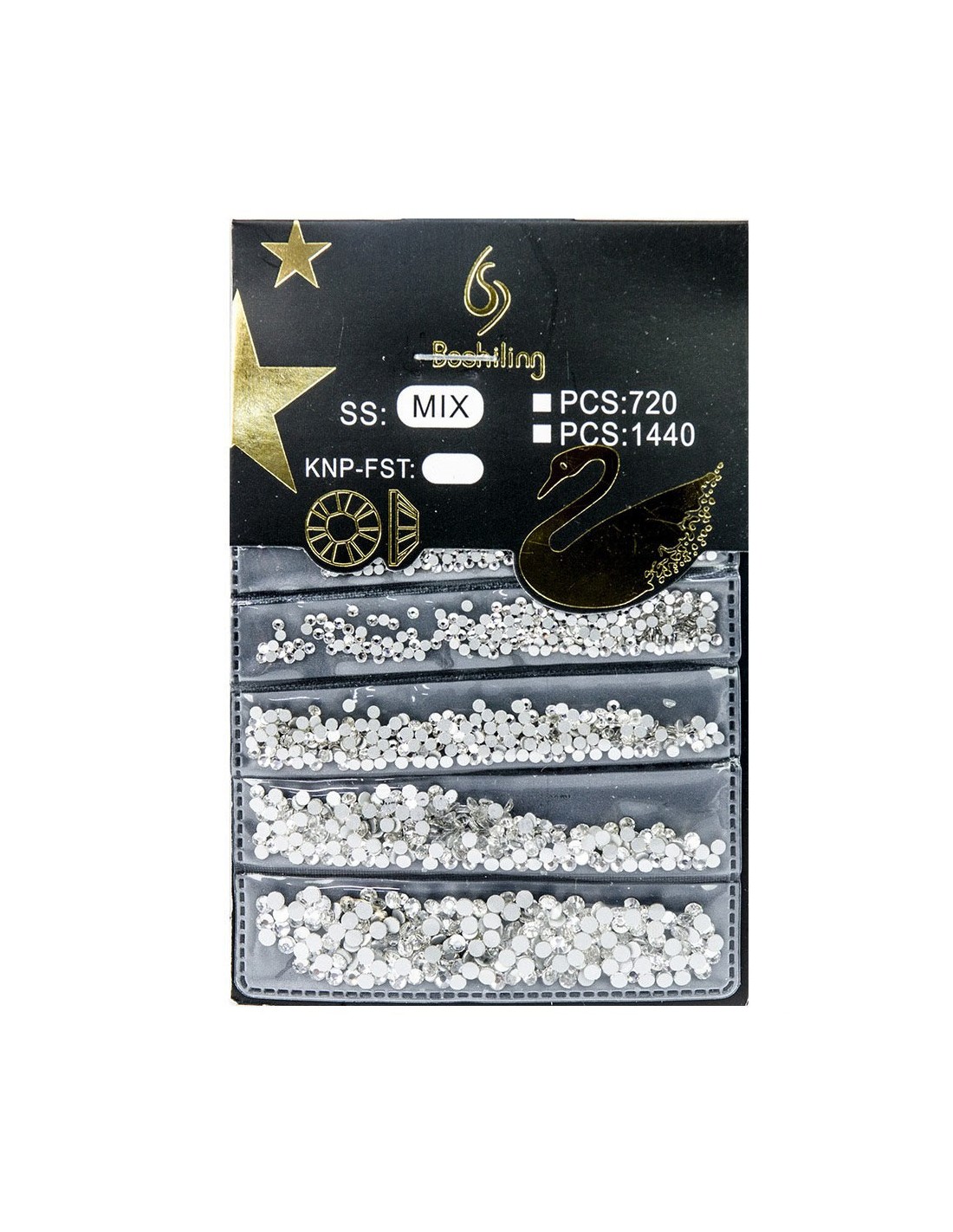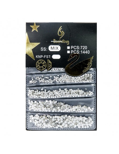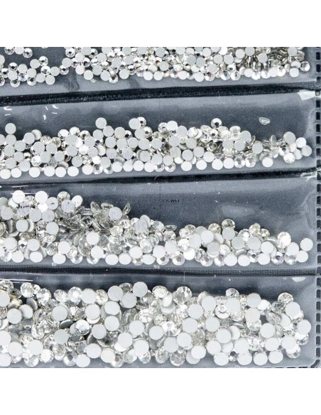 Fantastiske rhinestones i seks størrelser. Hver størrelse er innelukket i et separat plastrom.