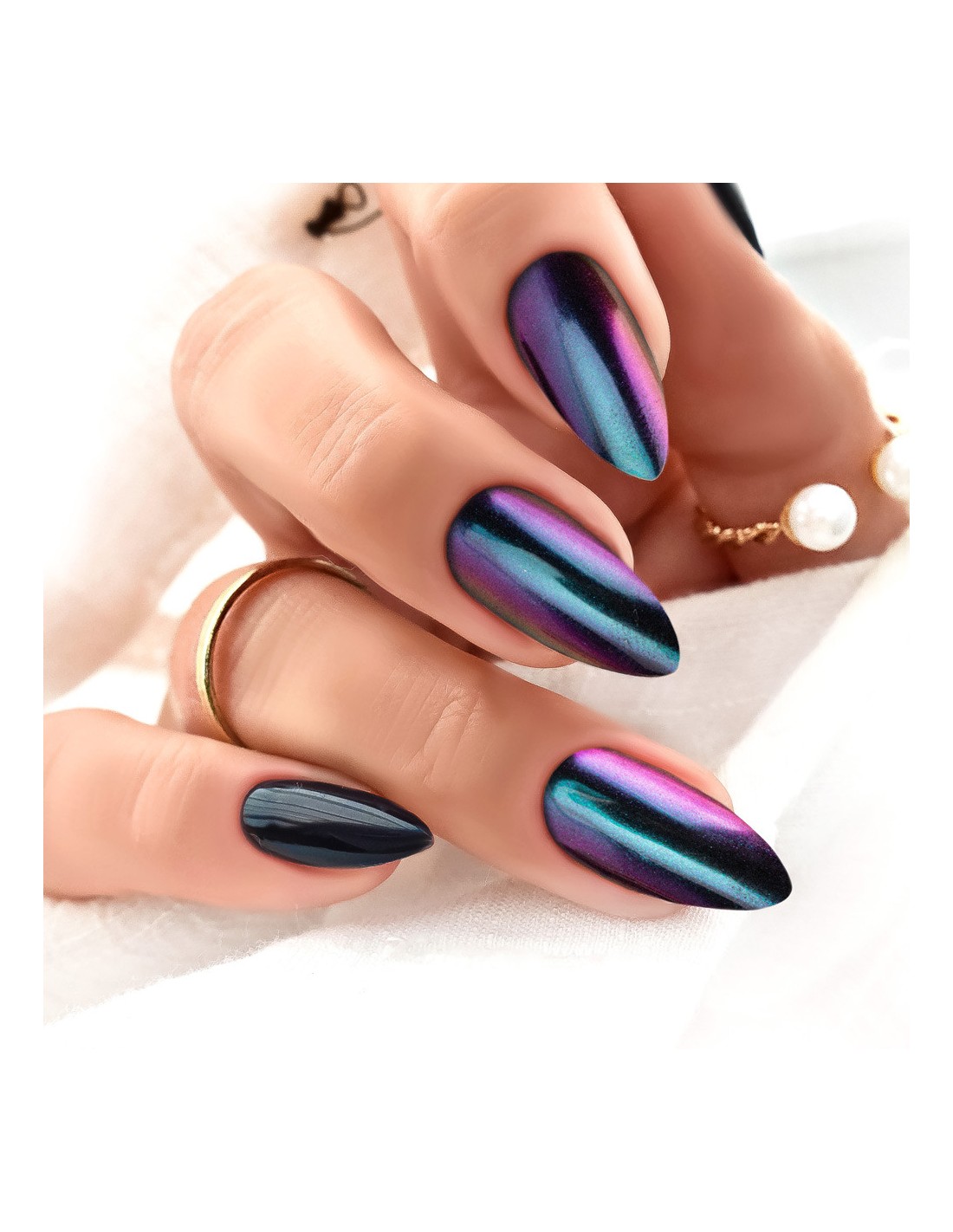 Fantastiske, flerfargede effekter på negler! Lag en fantastisk sammensetning på neglene dine på bare noen få minutter. Det perfekt reflekterende pigmentet vil skape en langvarig lyseffekt, hvis glans vil overraske deg. Når det brukes med forskjellige farger, kan man oppnå helt andre sluttresultater. Vi inviterer deg til å eksperimentere.
