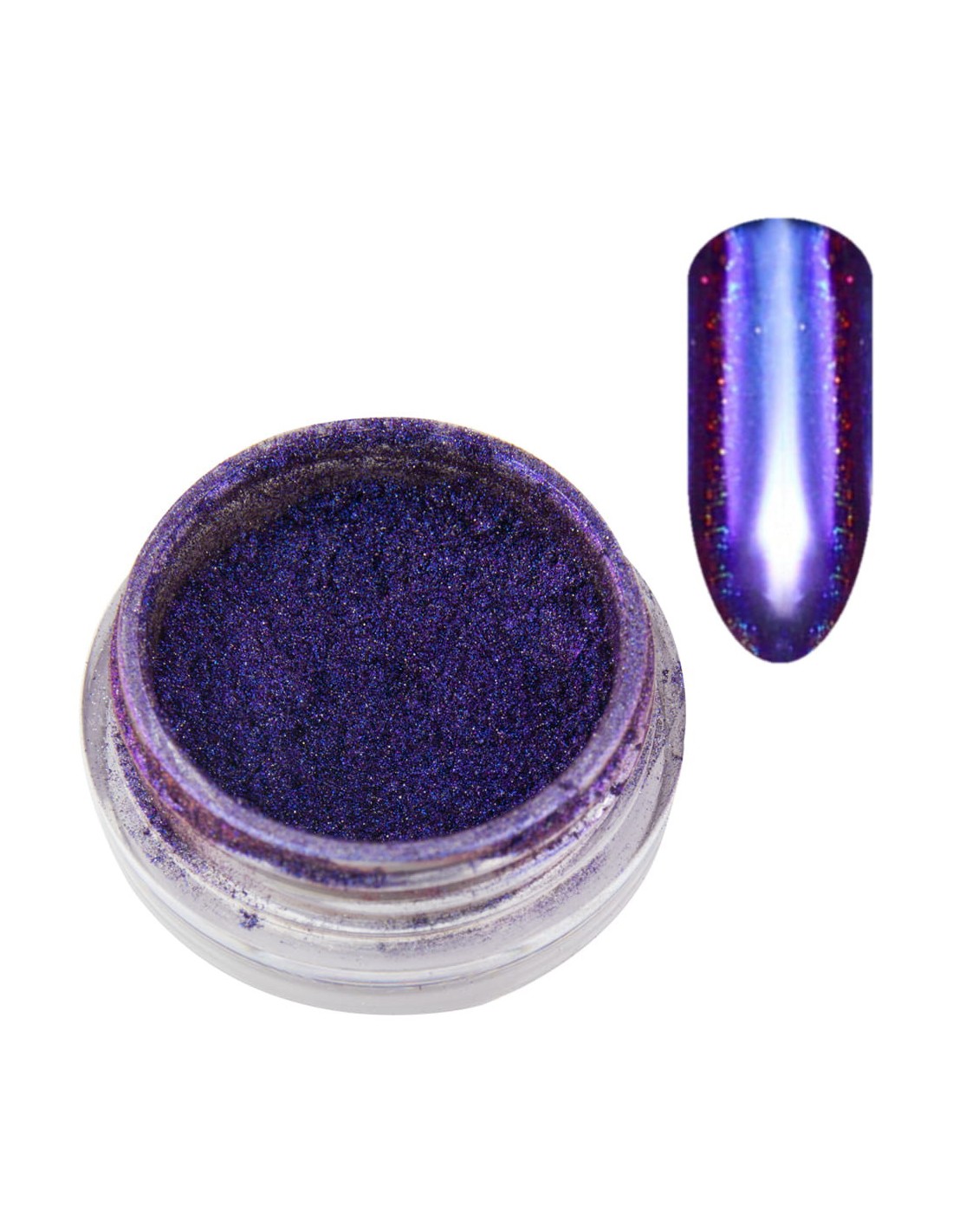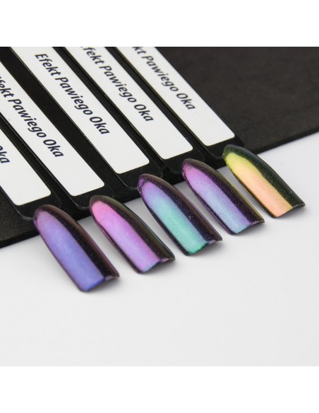 Prismatisk, flerfarget holografisk pudder for neglestyling, som gir en perfekt overflate. Fargen avhenger av lysets vinkel. Den mest spektakulære effekten som ligner påfuglens øyeeffekt, kan oppnås i sterkt, kunstig lys.