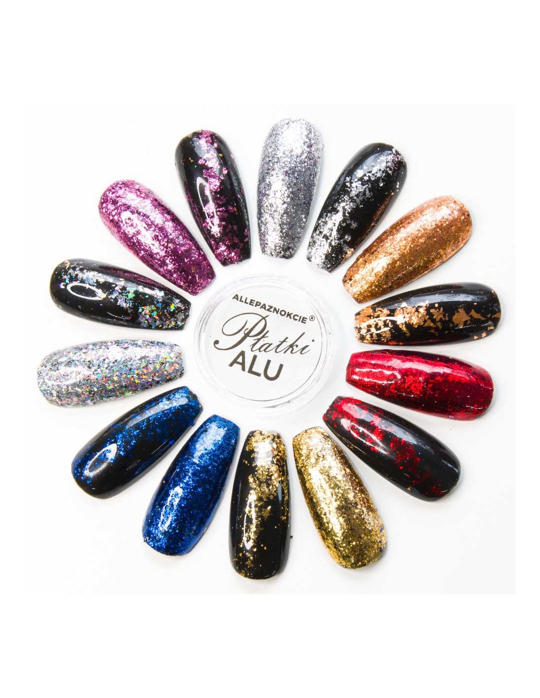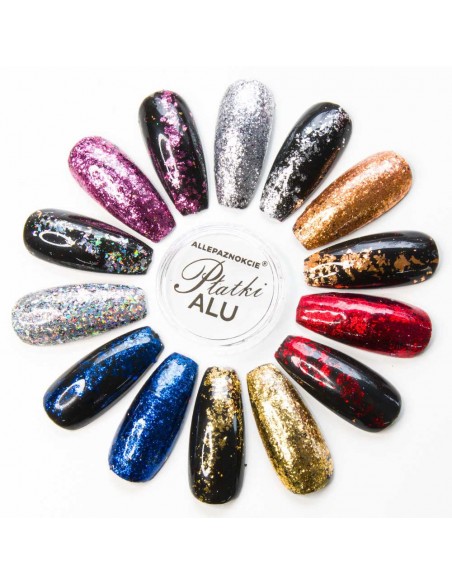 Fantastiske neglekunstalu i 7 unike farger. De vil skape en glitrende aluminiumseffekt på hånden din. Veldig god fargemetning vil gi deg en unik effekt på bare noen få øyeblikk. Du trenger ikke å bruke noen foundationfarge under lenger – selvfølgelig, hvis du ikke vil! Bli forelsket i deres fantastiske farger og velg din drøm.