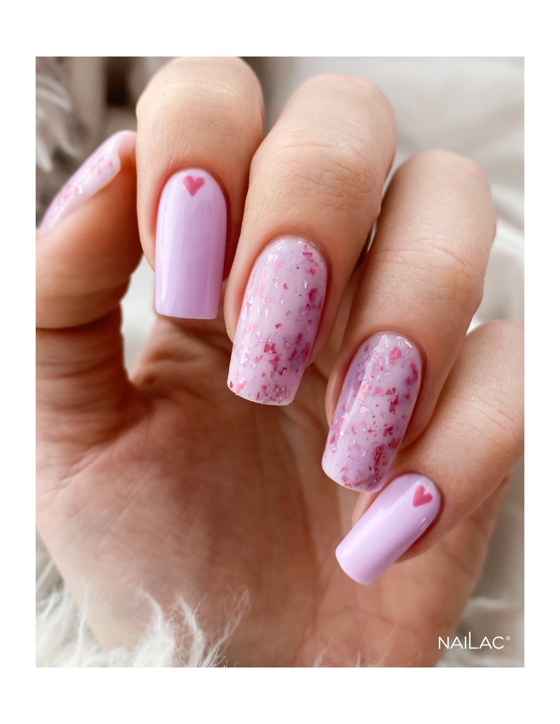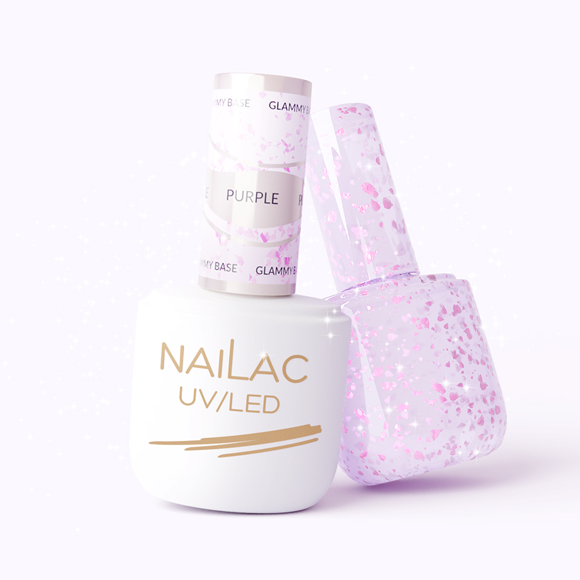 Glammy Base Purple er en myk lilla gummibase med biter av kuttet folie i lilla og rosa nyanser. Det vil bli en stilig hånddekorasjon som ikke krever bruk av en annen hybridlakk. Det vil fremskynde arbeidet og erstatte to produkter med hell - det vil være en base og en farge beriket med skimrende partikler. Bare ett lag vil gjøre neglene dine synonymt med luksusen du fortjener.