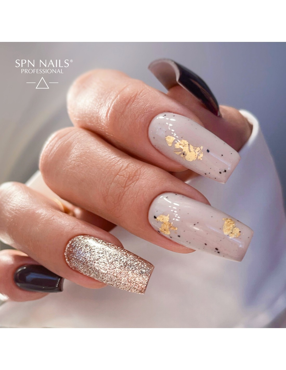 - Rengjør med SPN Clean & prep/Clean & Shine og påfør neglebåndsolje på neglebåndene.