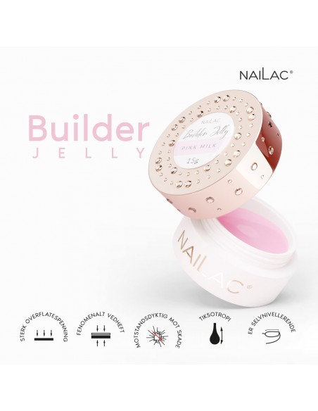 · Gel som kan brukes til forlengelse, oppbygging, utjevning og herding på både lange og korte negler - med Builder Jelly kan du korrigere enhver ufullkommenhet på negleplaten, og den forlengede neglen kommer til å være sterk og holdbar.
