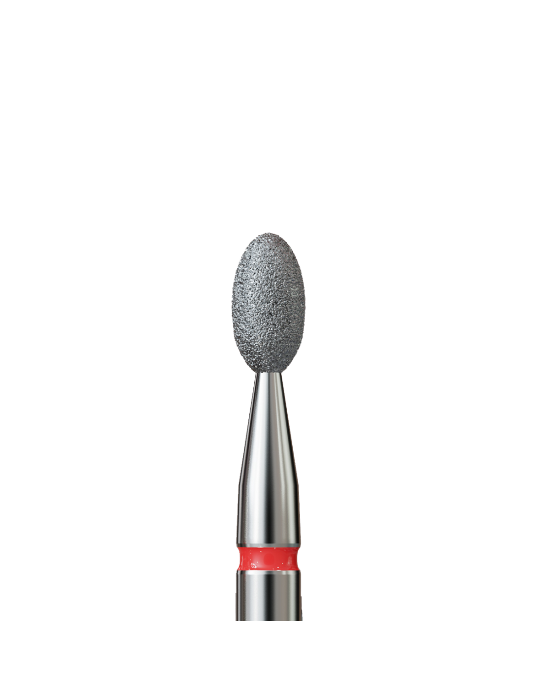 Diamantfreser (277.514.025) med sin fine kornform gir utrolig kontroll takket være den skånsomme virkningen. Olivenformen og den røde stripen gjør den ideell for skånsom fjerning av død hud, opphopning og neglebånd fra den laterale neglefolden og neglens labium.