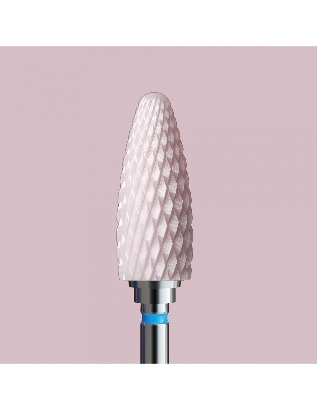 Keramisk fres, laget av zirkoniumoksid, er et middel for spesielle oppgaver. Den varmes opp mindre. Formen - kjegleformet og den blå stripen - gjør den ideell for å fjerne hybrid, gel og akryl fra den naturlige negleplaten. Den kan brukes både til "tørt" arbeid og med vannkjøling.