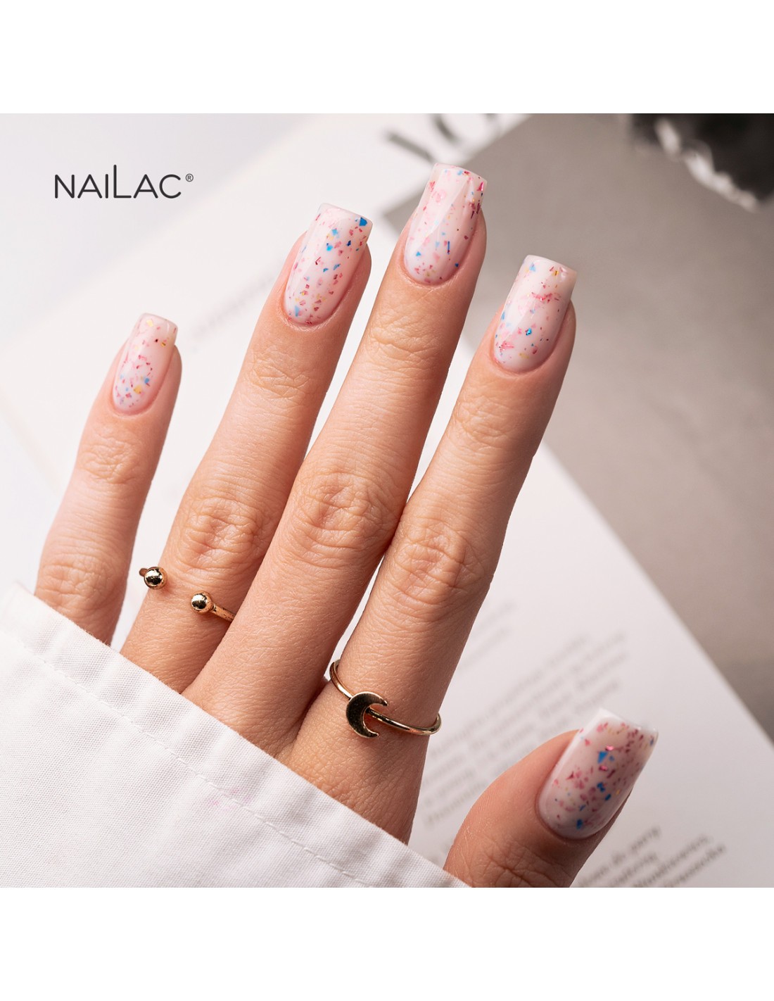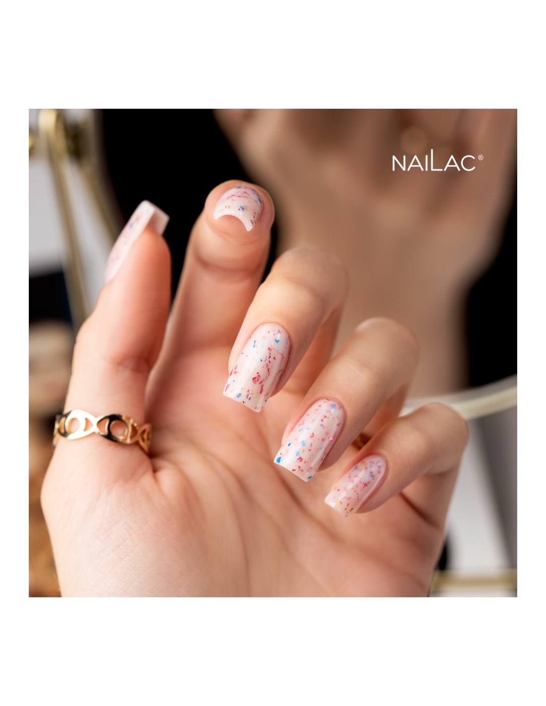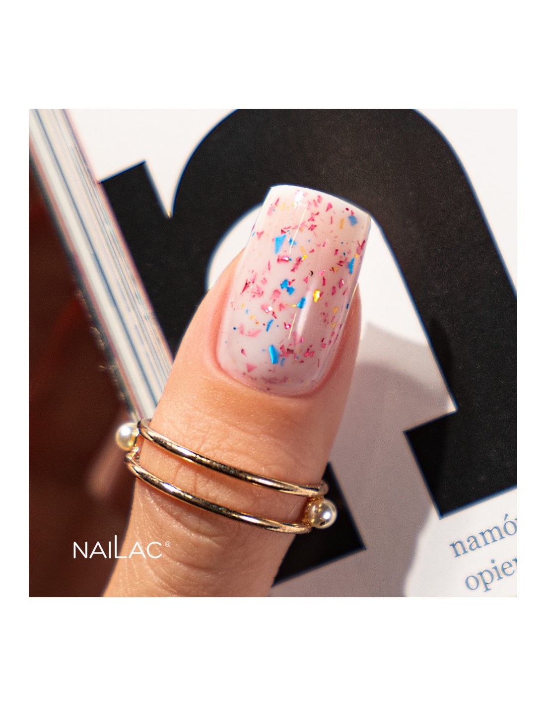Det er på tide å feire i en virkelig elegant stil! Glammy Base Milk &Confetti er en melkeaktig gummibase der vi har innebygd biter av kuttfolie i tre nyanser - gull, rosa og blå. Det er en ekte kinaputt som vil live opp ethvert festantrekk og understreke din unike stil! Bare ett lag av det vil sette deg i stemningen av gledelig feiring og virkelig festglød, uansett anledning.