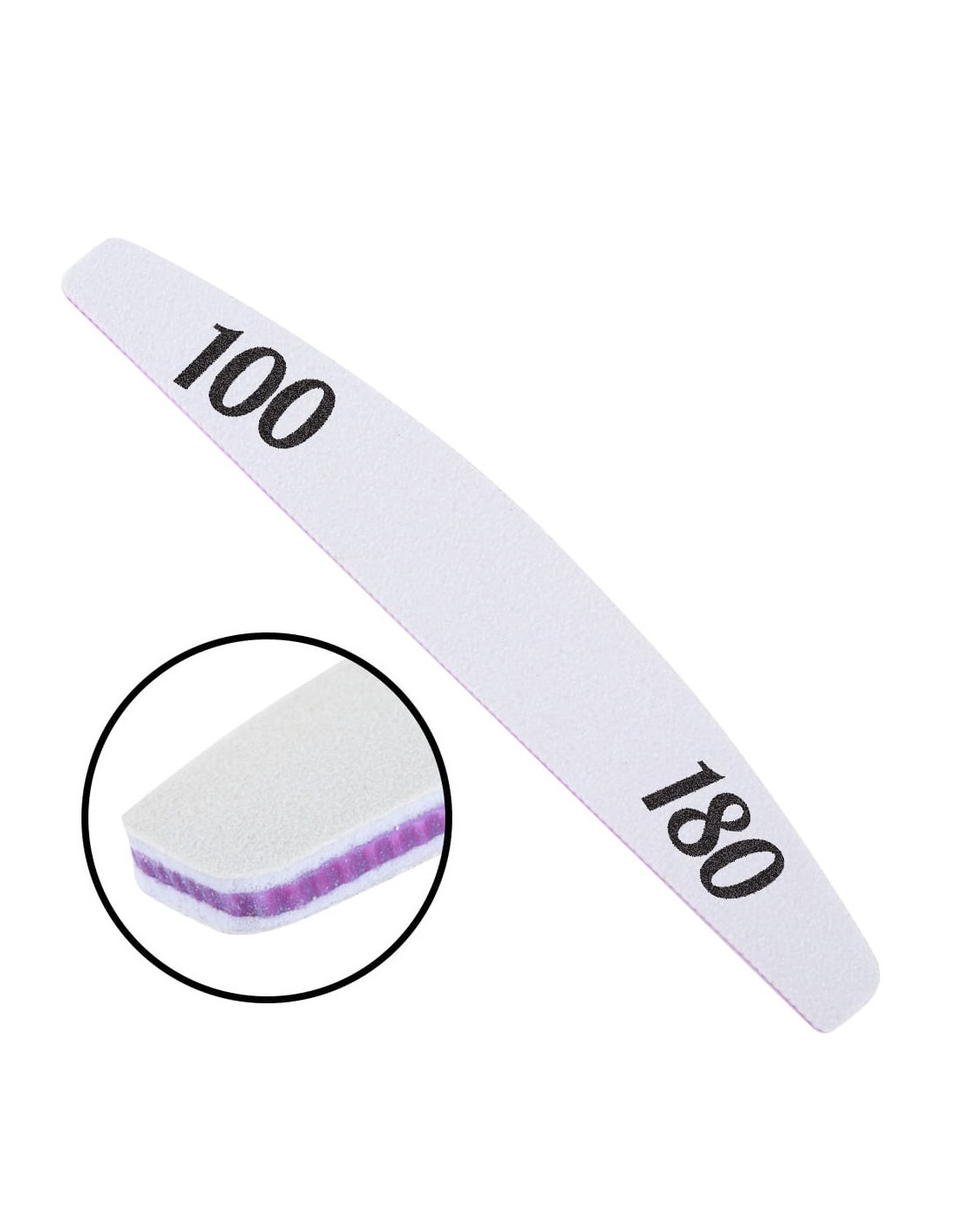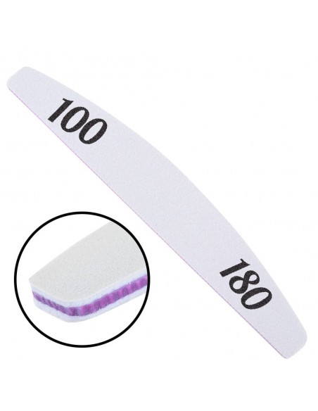 Engangs, universell fil med en gradering på 100/180 og formen på en båt, for naturlige og utvidede negler med ekstremt holdbare komponenter og lang brukstid. Den er preget av et hardt, svært motstandsdyktig mot brudd og deformasjonsmiddel. Produktet glir jevnt på den sagde overflaten, skader ikke huden eller forårsaker ubehag. Høy kvalitet og motstandsdyktig mot slitasje.