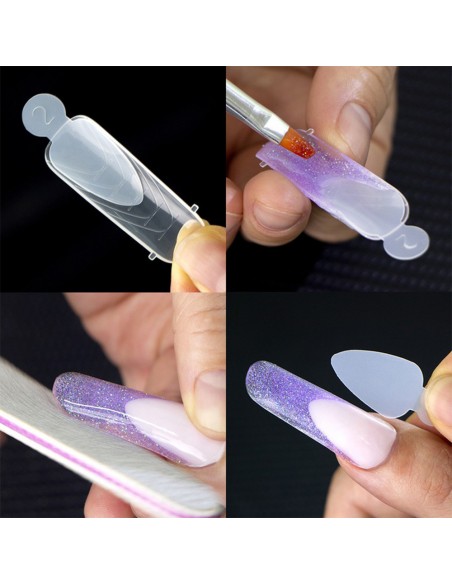 Silikonformer kombinert med øvre doble former vil hjelpe deg med å skape den perfekte franske linjen. De er tilgjengelige i 4 typer for å passe perfekt til smilelinjer til alle lengder og former på neglene som er opprettet.