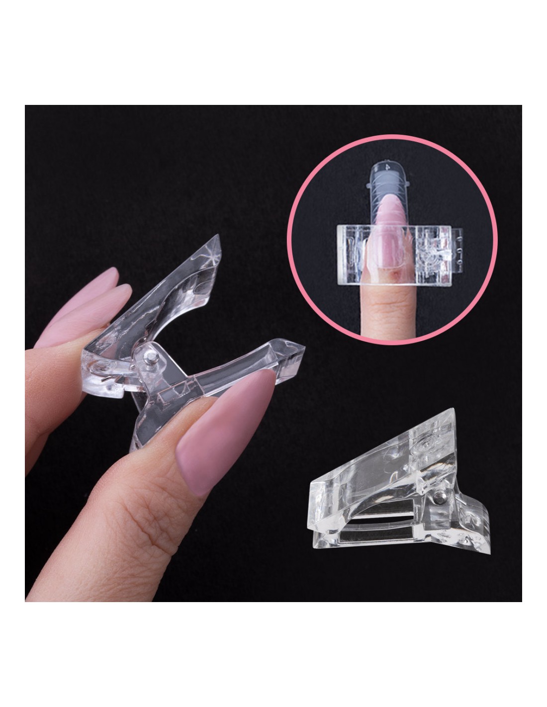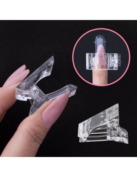 Plastklemme/spenne for å holde den doble formen med akrylgel på plass under polymerisasjonsprosessen i lampen og forme massen fra bunnen. Du kan være sikker på at pulvergelmassen og formen forblir på plass og ikke beveger seg når du former massen fra bunnen før herding.
