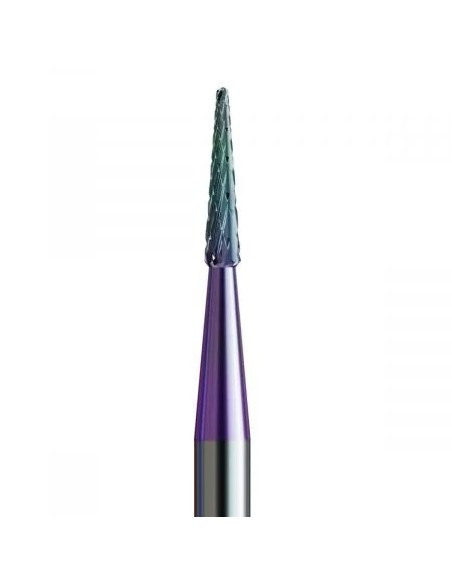 Karbidfreseren (KMN-198XS HP.016) har en konisk form med en avrundet topp, slik at du kan jobbe med neglebånd, rengjøre undersiden av neglene og jobbe med gel. Den skarpe enden av freseren gir litt dypere penetrasjon og grundig rengjøring av lommen.