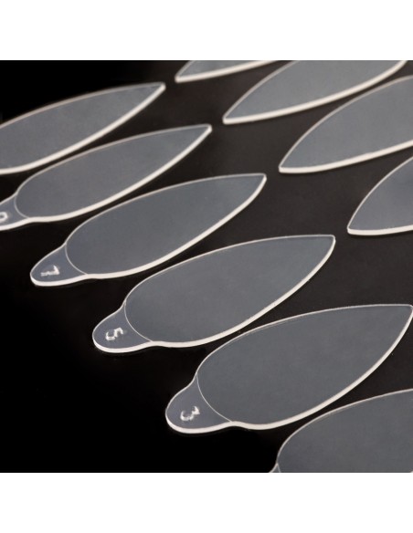 Med 4 forskjellige former kan vi lage den perfekte neglesengen for enhver neglelengde, fra firkanter til avantgarde. Klistremerkene kommer i forskjellige bredder, noe som gjør dem ideelle for alle typer fliser. Klistremerkene kan også klippes med skarp saks og brukes til duallformer.