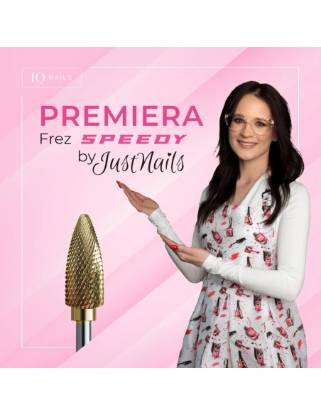 Den innovative Speedy-freseren er en karbidfreser dekket med et spesielt gullbelegg. ZRN-belegget forlenger freserens levetid og reduserer effekten av overoppheting under arbeid. I tillegg ble freseren laget for å få stylister til å glemme slitsomt og tidkrevende arbeid. Den takler enhver utfordring på et blunk. Spesielle kutt sikrer rask og sikker fjerning av massen.