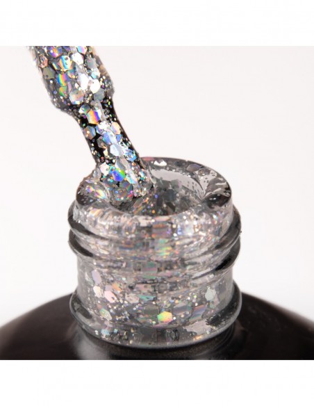I stedet for å skyte på nyttårsaften - gled deg med en slående stil! Sølv gelpolering 1012 Fireworks! venter på at du skal bruke den på festneglene dine. Spektakulært glitrende partikler og holografiske sekskanter gjør det til en ekte kinaputt blant gelpoleringsmidler. Bruk den til neglekunst, prinsessenegler eller som en karakteristisk detalj av subtile stylinger - ikke bare i nyttårsaftens negledesign.