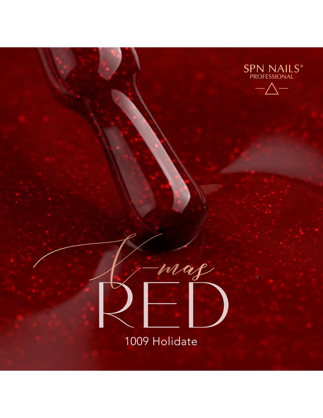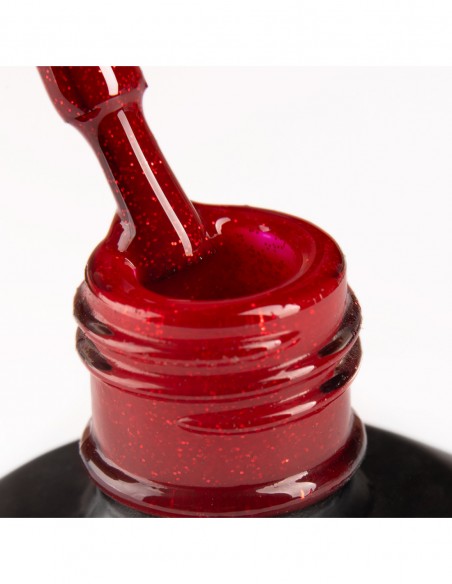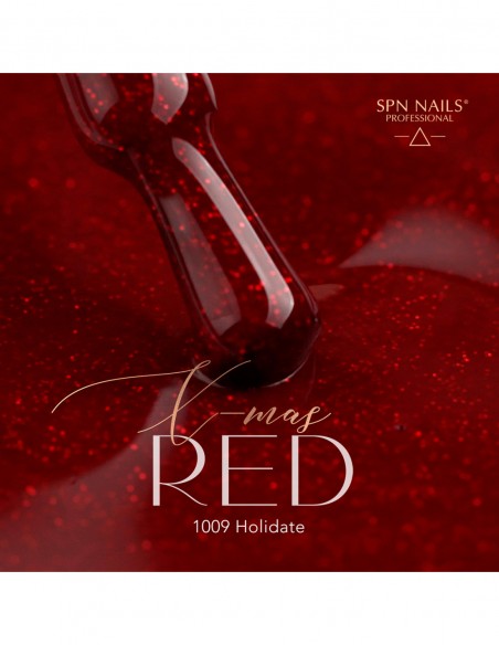 1009 Holidate UV LaQ 8ml er en rød gelpolering med glitter fra X-mas RED kolleksjonen.