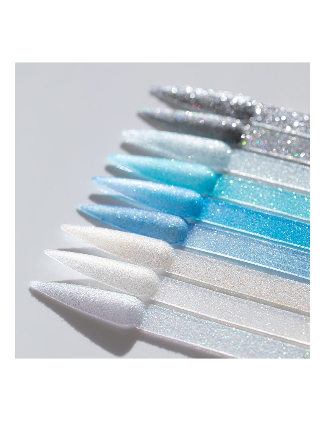 Sterk blå, vinterpulver med partikler av blått for negler er et elegant tilbehør som gir manikyret en intens farge og effekten av en blå glød. Det er som en dyp vinterhimmel. Partikler av blått gir den ekstra glans, noe som gjør neglene intense og elegante.