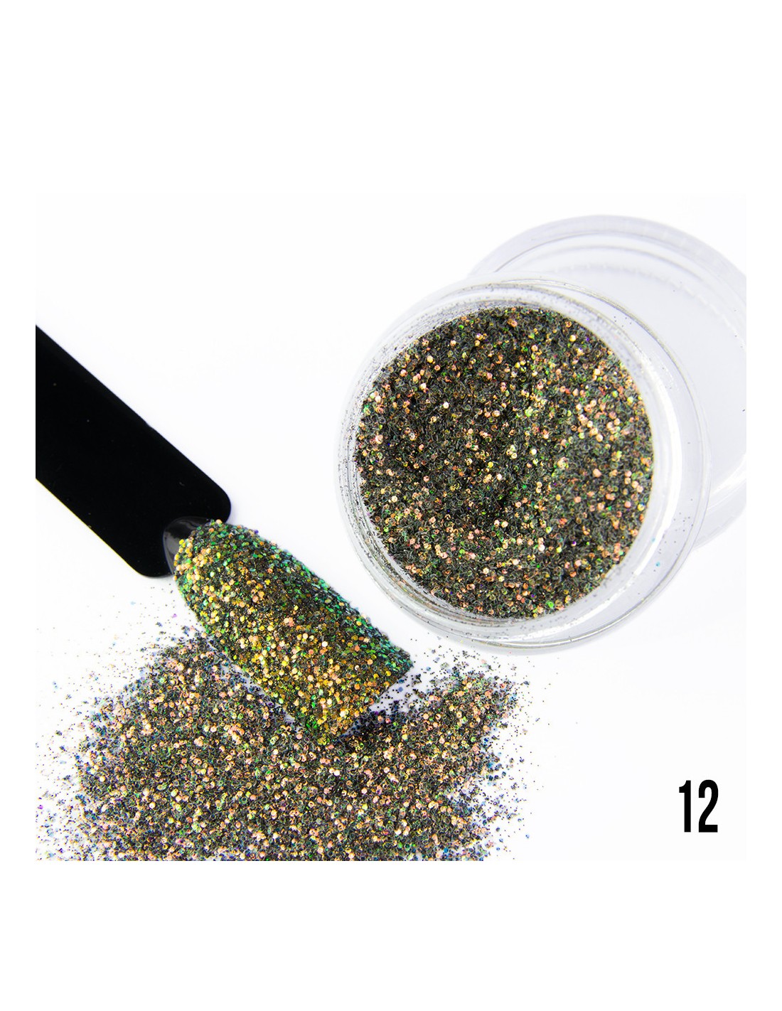 Coliber Effect neglepulver Feilfritt glanset flerdimensjonalt pulver i 12 spesielt utvalgte farger. Kombinasjonen av fint pudder og en tykkere flekk vil skape et veldig interessant og skinnende utseende for enhver styling.