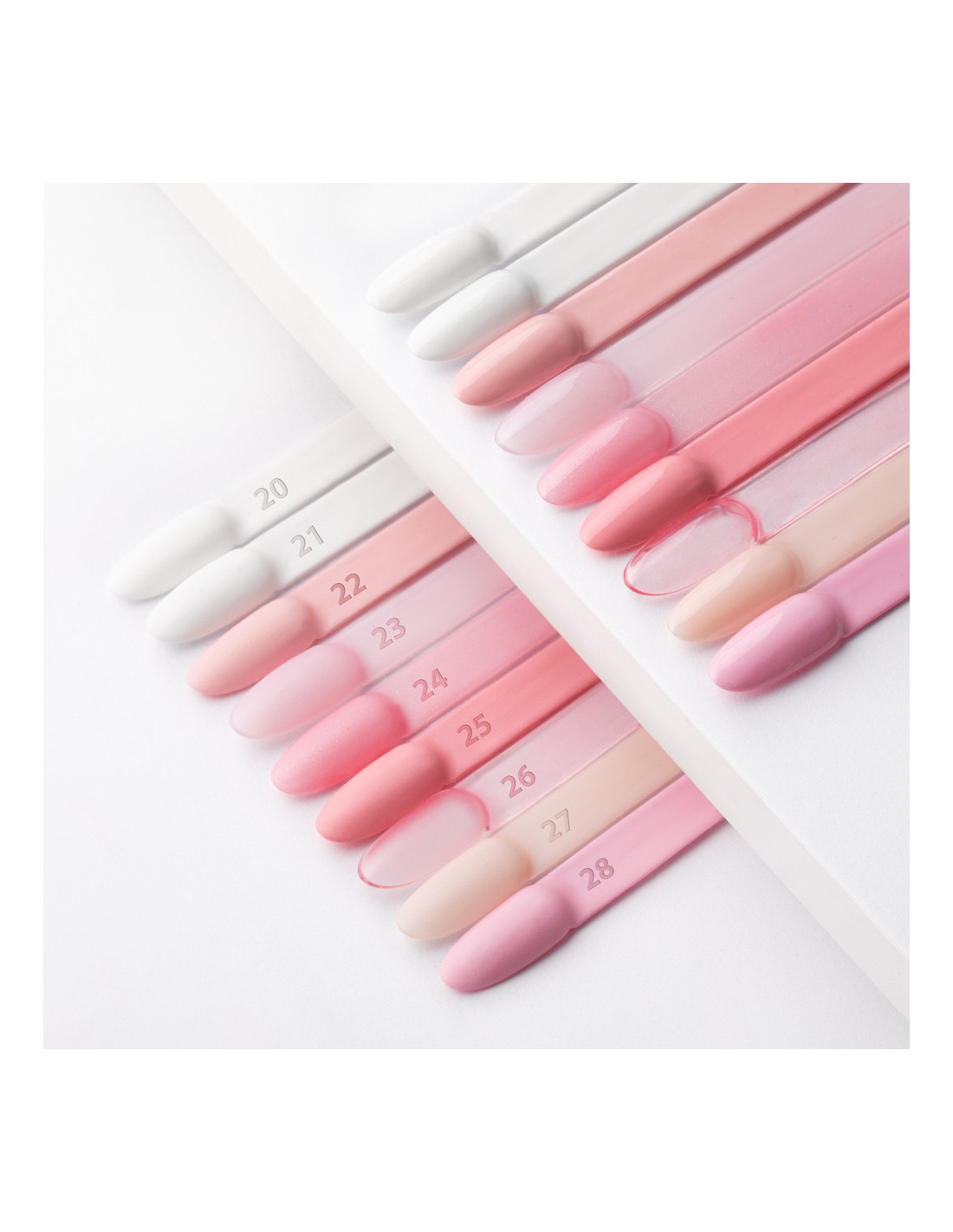 26.Elegant Blush - Fargen har ikke full dekning, den er ment å forsiktig fremheve den naturlige skjønnheten til neglene dine. Den er perfekt for å dekke mindre ufullkommenheter og legge letthet til hele stylingen.